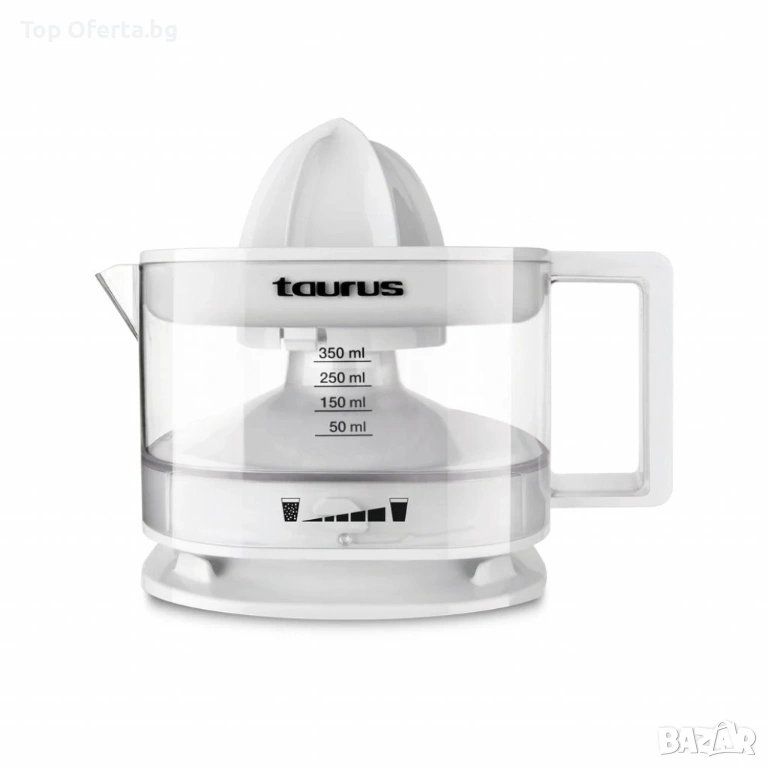 Компактна сокоизтисквачка Taurus TC-350, 25W, с двупосочно въртене и кана Компактната сокоизстисквачка с мощност 25 W и мерителна кана от 0,35 л е идеална за бързо и лесно приготвяне на пресни сокове. Регулаторът за пулпа и двойното въртене осигуряват ефикасно и персонализирано извличане. Разглобяемият дизайн и частите, подходящи за съдомиялна машина, я правят лесна за почистване. Включва държач за кабел и компактен дизайн, идеален за пестене на място в кухнята. Перфектна за наслаждаване на здравословни сокове всеки ден.