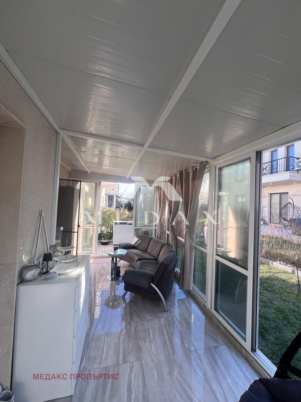 допълнително изградена закрита веранда - уютно пространство за релакс, барбекю зона и озеленяване.