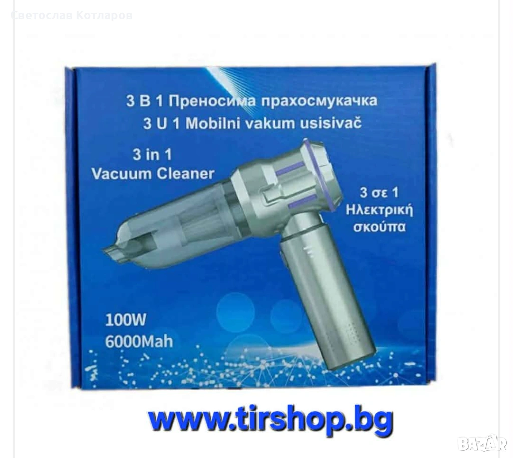 Прахосмукачка за кола супермощна 6000mAh / 100W- многофункционална 3 в 1