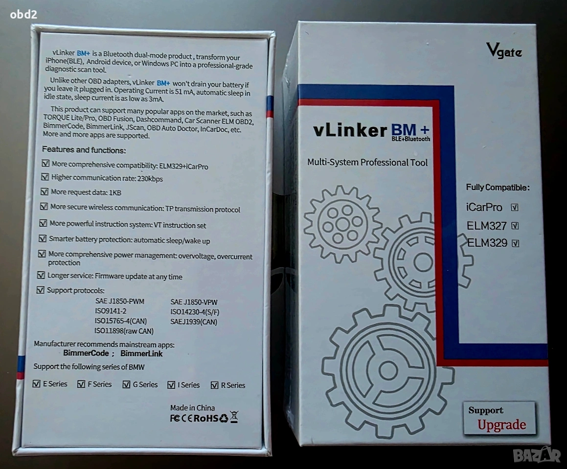 Професионален vLinker BM+ (BtLE) - Идеален за BimmerCode (за BMW) OBD2