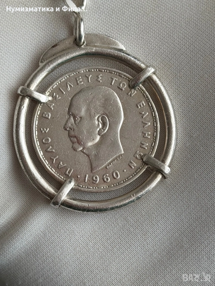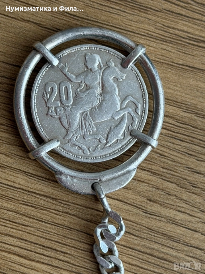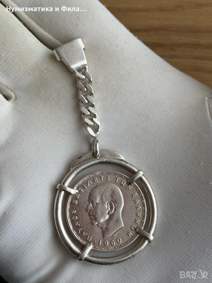Сребърен ключодържател с монета 20 драхми 1960 г. – Гърция