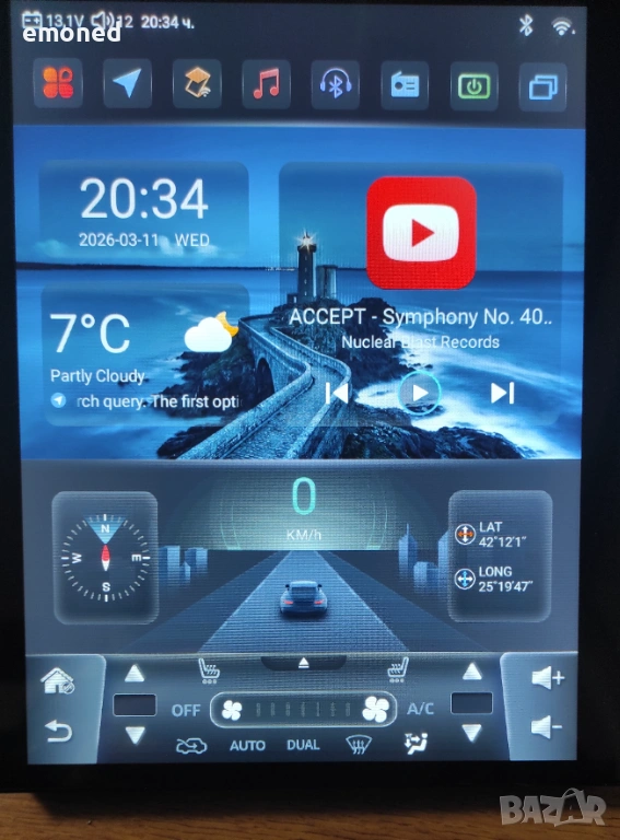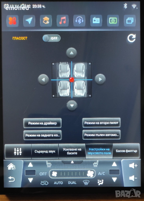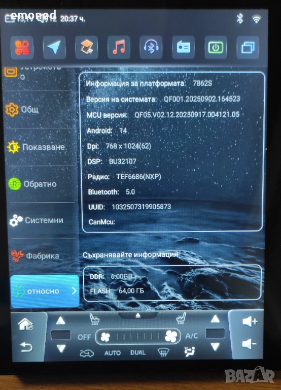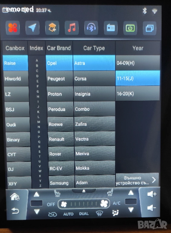 мултимедия. Не е поставяна на кола. Нова е. Единствено съм я захранвал да я тествам и да направя снимки. На рамката няма бутони за Eco и SPORT режим, поради което не е подходяща за Астри с тези бутони.