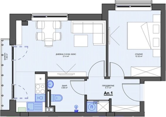 * просторна дневна с кухненски бокс