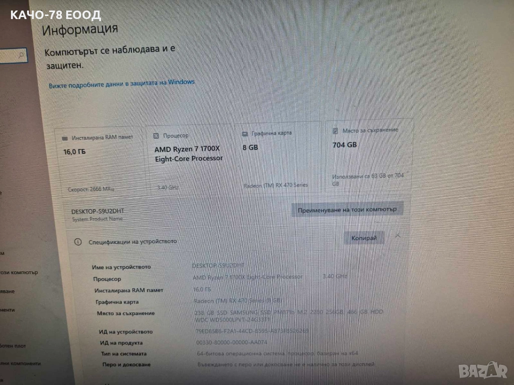 - Процесор AMD Ryzen 7 1700X Eight-Core Processor