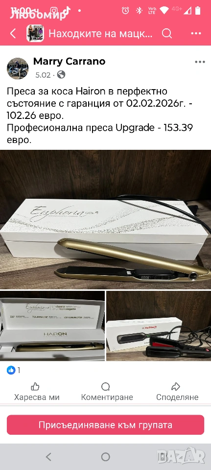 Преса за коса HAIRON Euphoria Gold с турмалиново покритие 230 градуса йонизираща функция