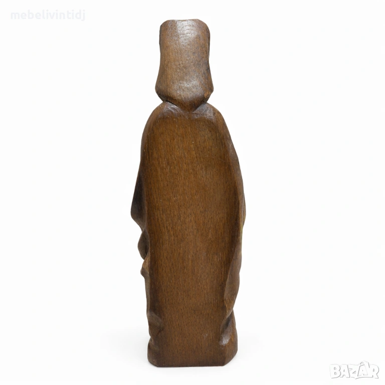 Елегантна ръчно резбована статуетка от масивно дърво, изобразяваща дама в традиционно средновековно облекло. Отличава се с красива естествена патина, фина изработка и декоративна стойност. Подходяща за интериор или колекция.