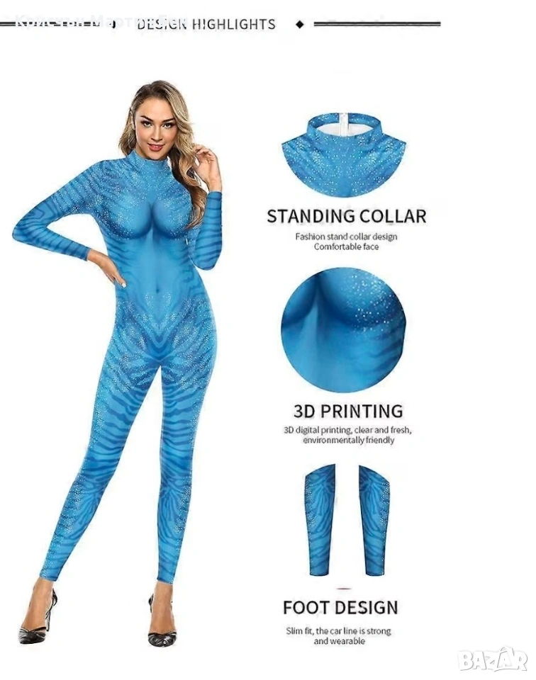 Превърнете се в могъщо, неземно същество с този боди, вдъхновен от „Аватар“. Дизайн с впечатляващи 3D сини тигрови райета и блестящи детайли, този костюм обгръща всяка извивка за елегантен кинематографичен ефект. Материал: Високоеластична смес от полиестер и еластан, мека, дишаща и удобна за дълготрайно носене Стил: Дълъг, вталъчен гащеризон с дълги ръкави и имитация на деколтето Включени аксесоари: само костюм Основни характеристики на дизайна: Син градиентен ефект с щамповани райета и лъскав модел, създаващ реалистичен вид, вдъхновен от Аватар Налични цветове: Син с черен и сребрист мотив Налични размери: M, L, XL, 2XL Идеално за: косплей събития, костюмирани партита, научнофантастични конвенции, Хелоуин и тематични фотосесии