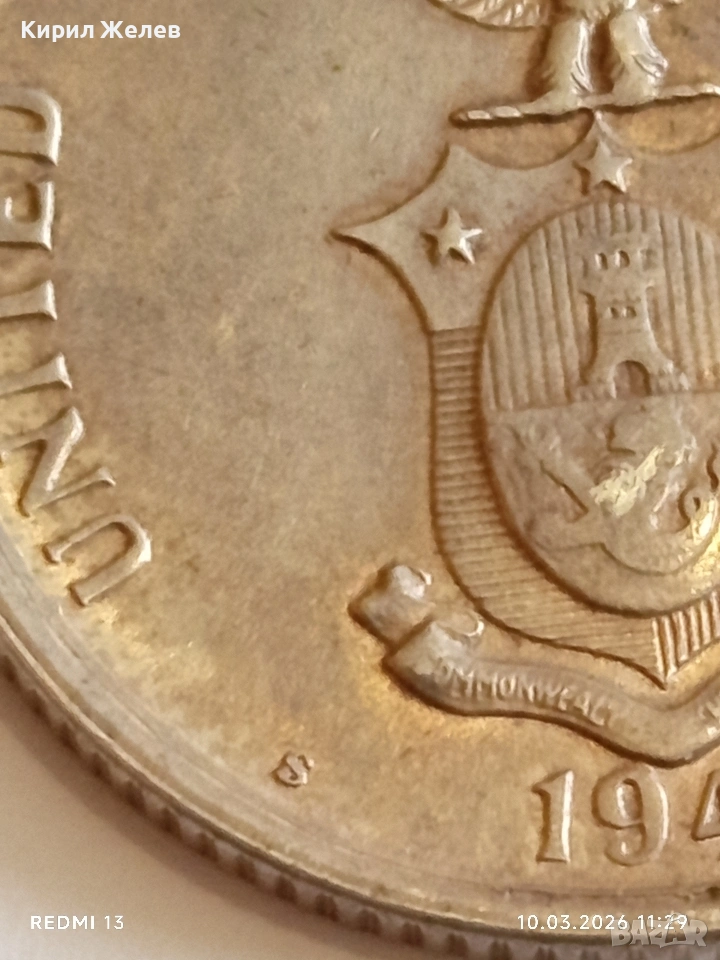 Сребърна монета 5 сентавос 1944г. Филипините Администрация на САЩ 48038