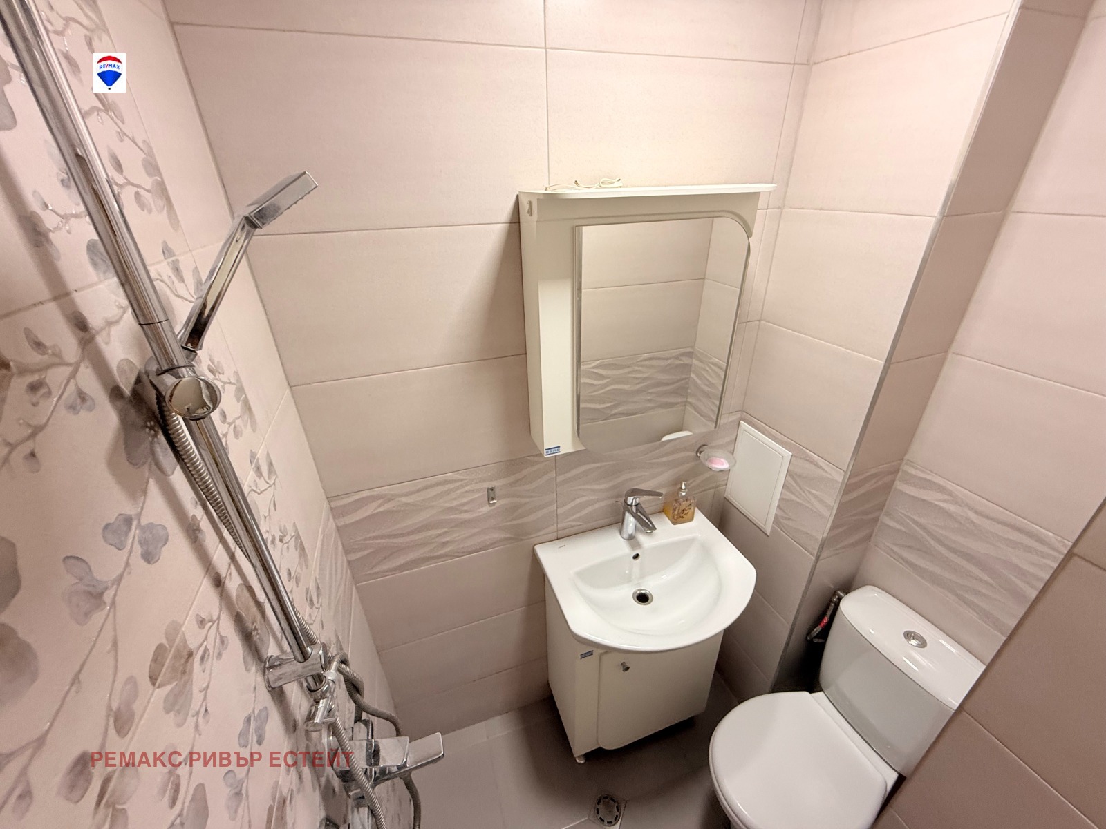 Банята и тоалетната са в едно помещение, функционално и удобно за ежедневно ползване.