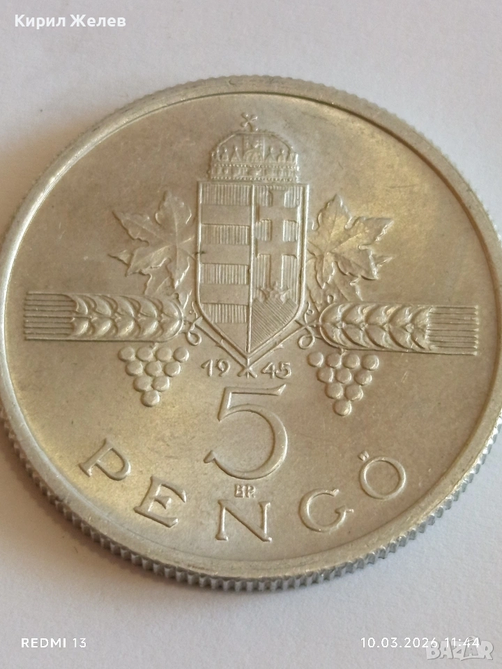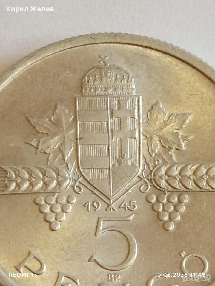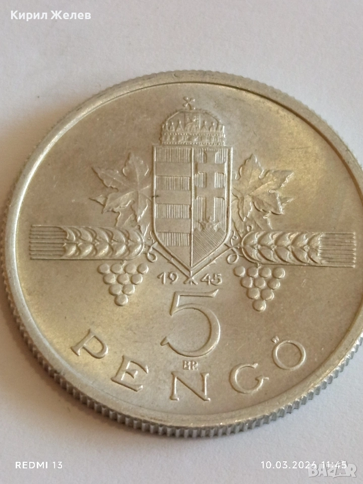 Рядка монета 5 пенгьо 1945г. Унгария за КОЛЕКЦИОНЕРИ 28607