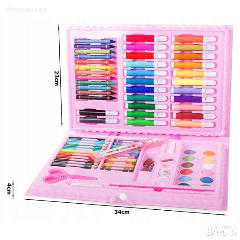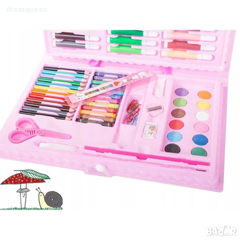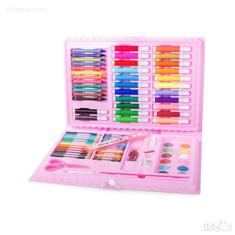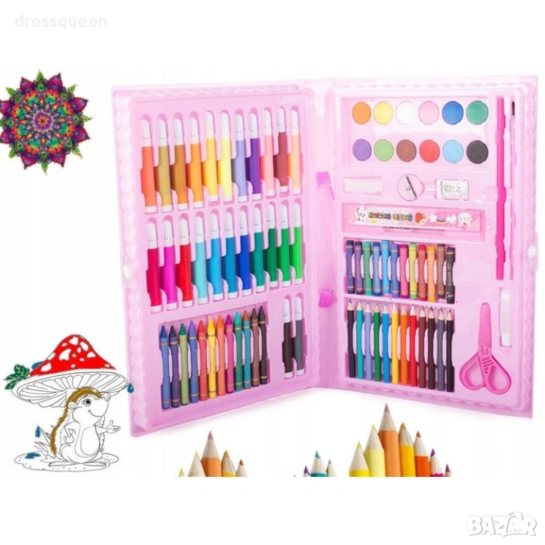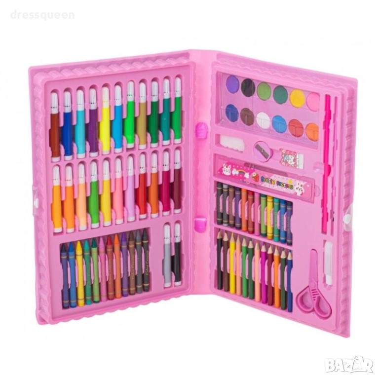 Търсите перфектния арт комплект за деца? Този детски комплект за рисуване 86 части е създаден, за да вдъхнови малките художници над 3 години. Всички 86 елемента са прилежно подредени в здрав розов пластмасов куфар с удобна дръжка.