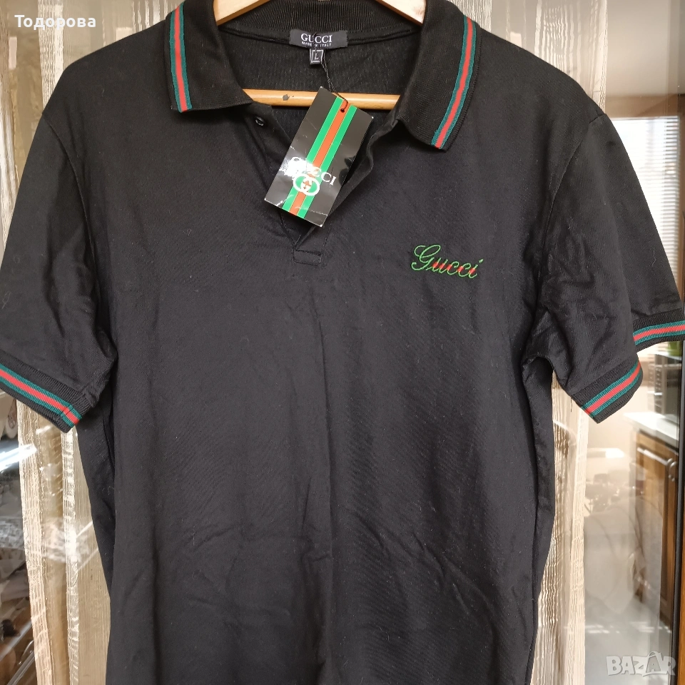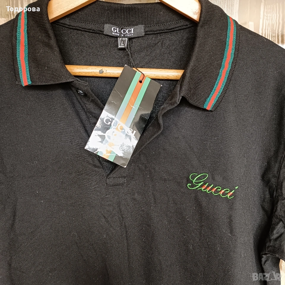 Нова Черна тениска Gucci с яка . 100% памук .