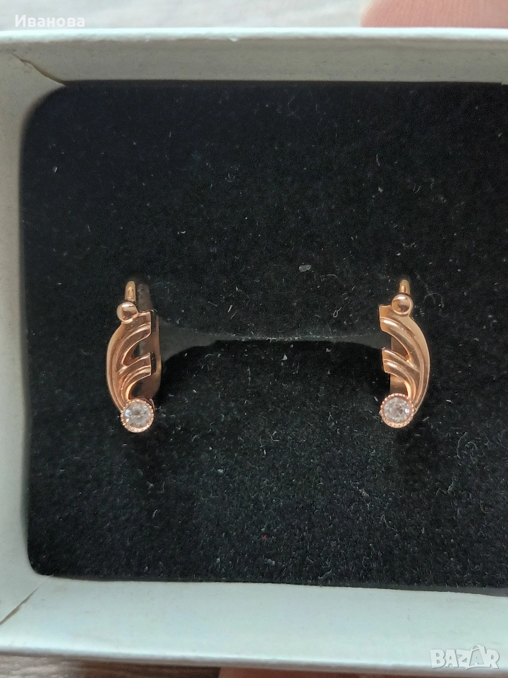 1.Обици от розово руско злато, много нежни, с бляскави фианити. Състояние- безупречно! Съчетават класическа елегантност и стил. Закопчаването е много стабилно. Имат всички маркировки. Подходящи са и за деца и девойки. Цена 315€.