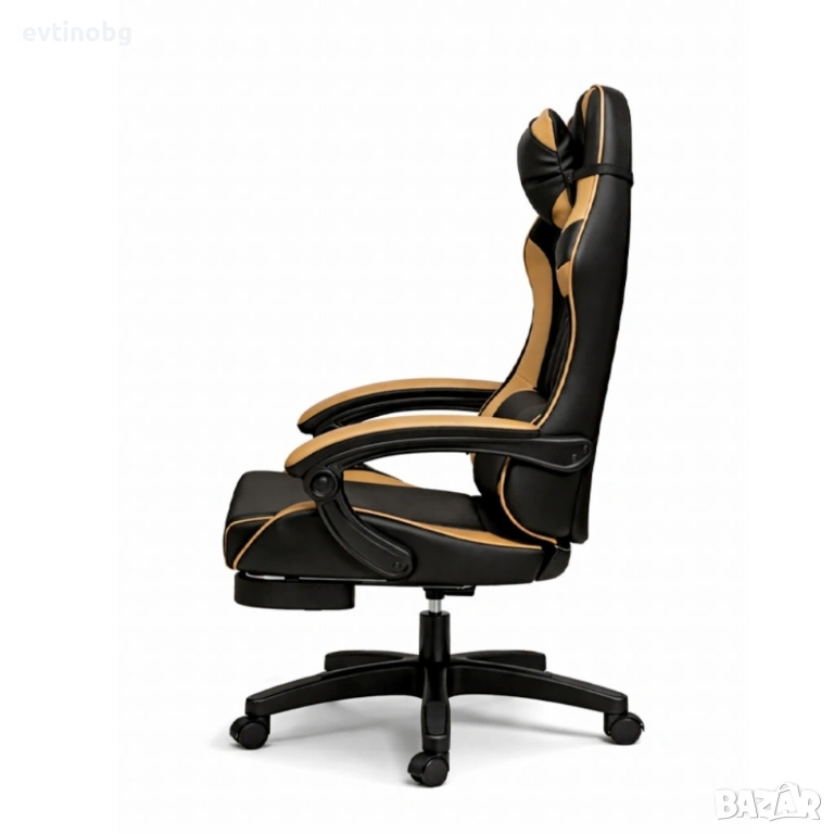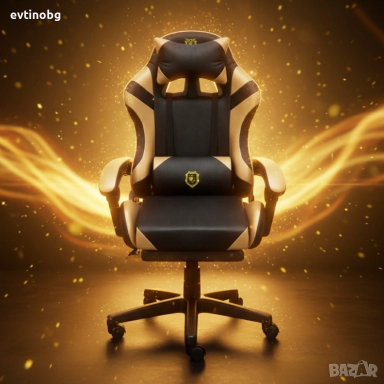 Геймърски стол с масажна функция, лумбална възглавница и поставка за крака – Черен-златист