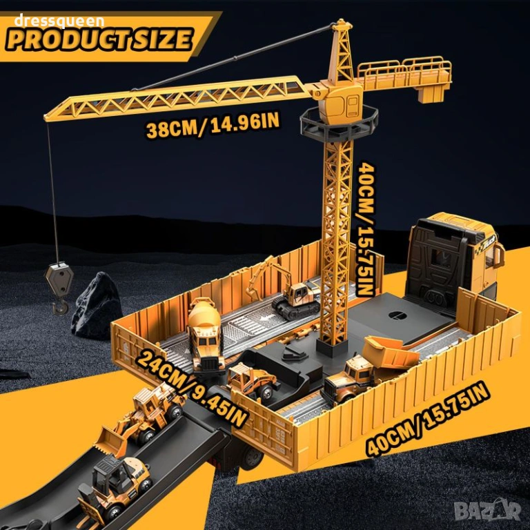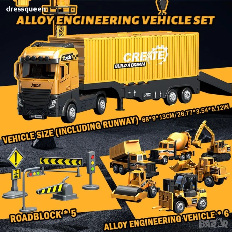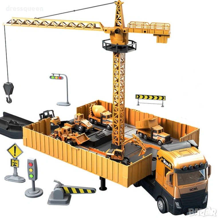 Този висококачествен Alloy Engineering Vehicle Set е задължителен за всеки малък инженер! Комплектът предлага повече от просто камион с кран – той е цяла разгъваема строителна площадка за организирана и творческа игра.