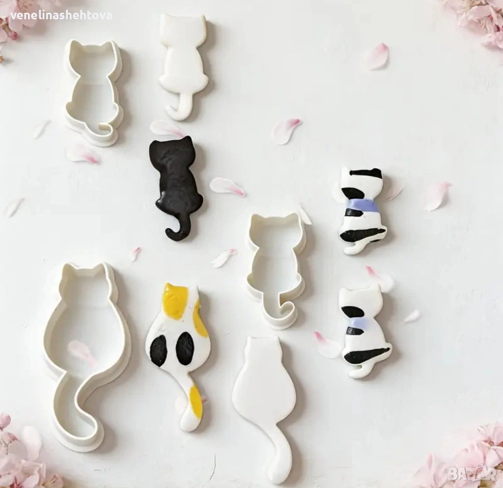 5 броя котета котки коте глава пластмасови резци резец тесто бисквитки фондан декорация торта смола → Обява 53780354