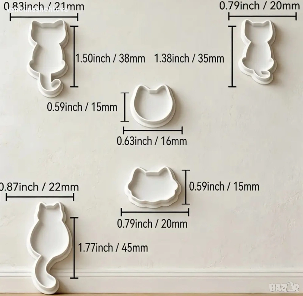 5 броя котета котки коте глава пластмасови резци резец тесто бисквитки фондан декорация торта смола