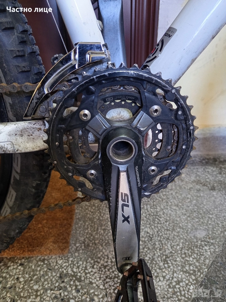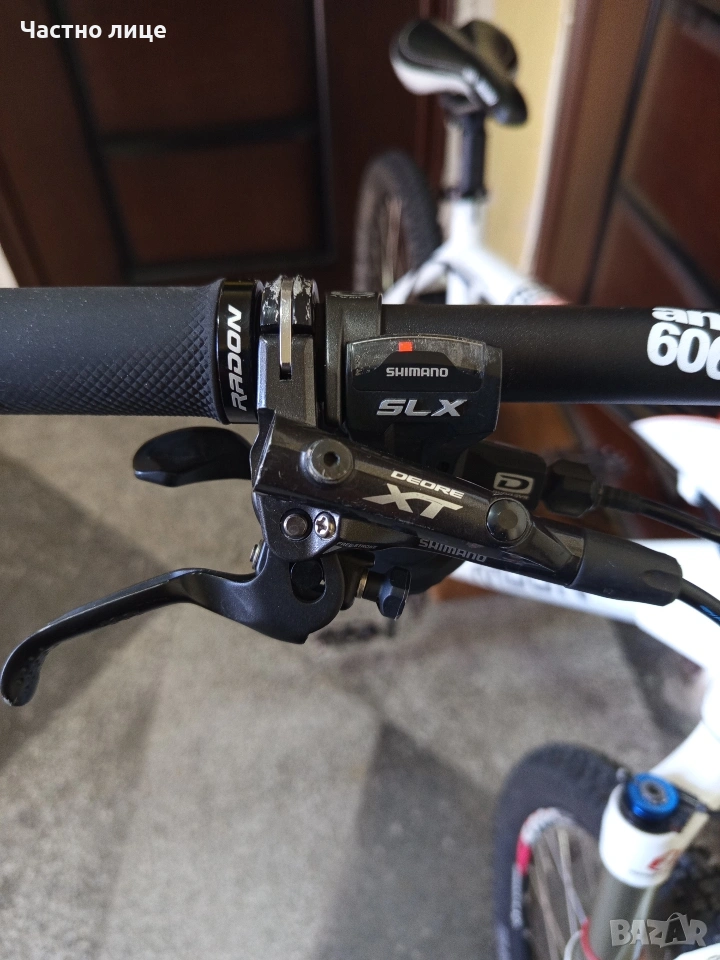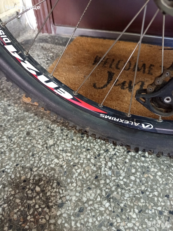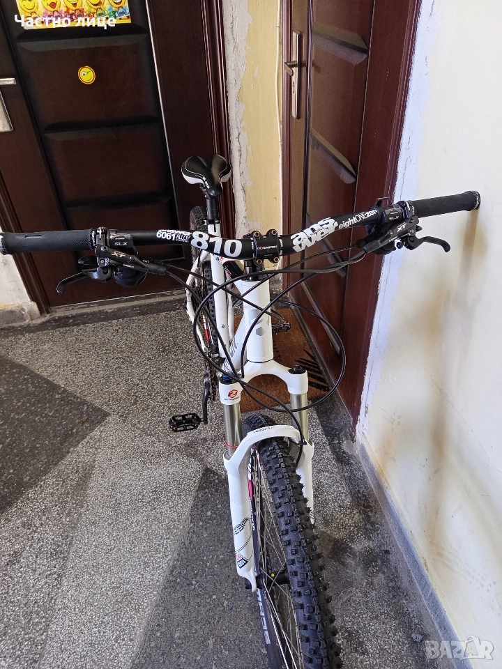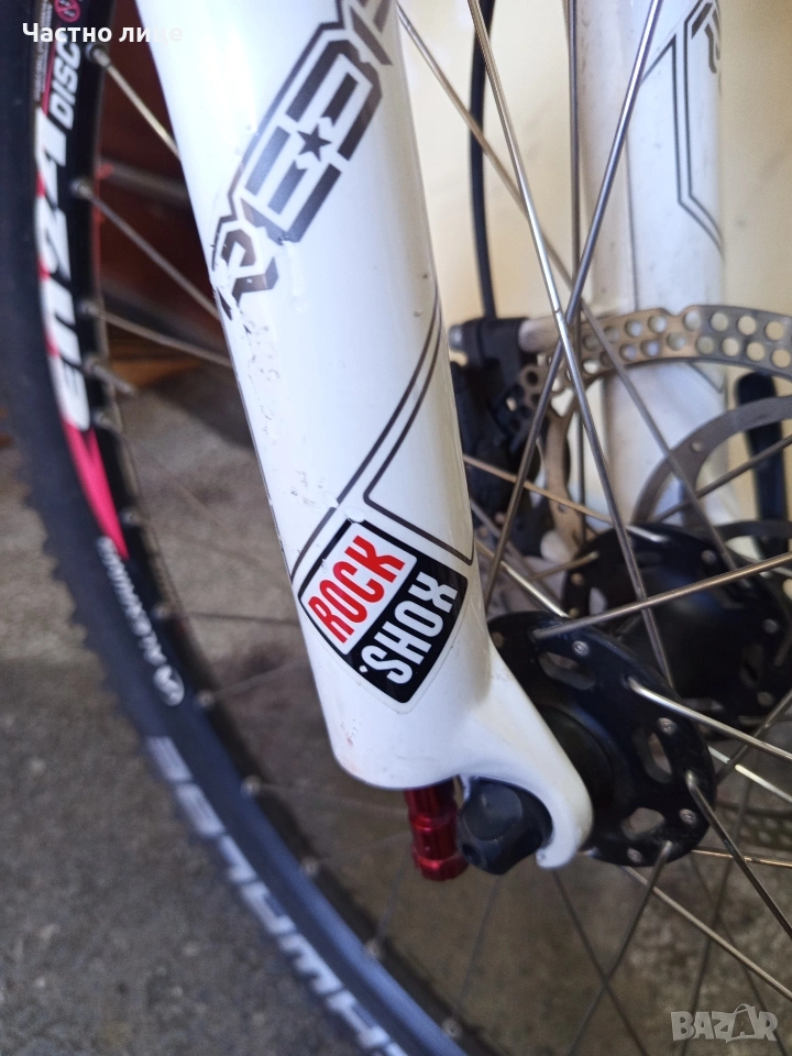 Алуминиев-(7005l26"цолов.преден амортисьор-RockShox дискови спирачки.XT,преден и заден дерайлоюрXT,аеро капли-Alexrims,Гуми-Scwalbe (като нови).Скоростни превключватели,SLX,ГлавиниXT.В отлично техническо състояние е.лек и удобен за каране! намира се в гр.Шумен