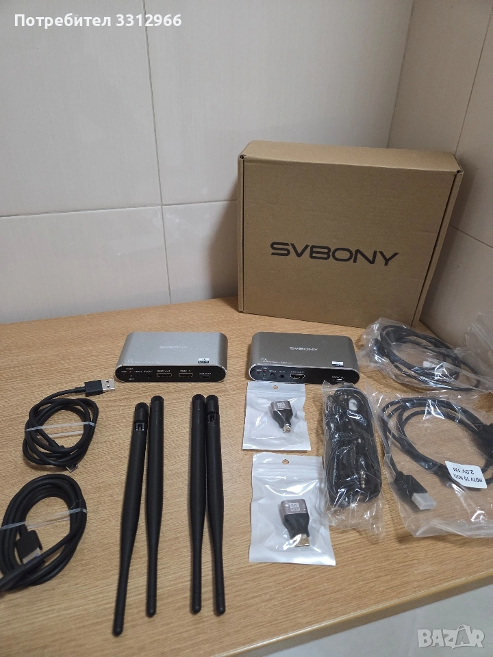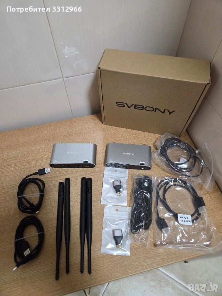 SVBONY TransAir2 (модел ST3) е безжична система за предаване на видеосигнал, която позволява безжично свързване на HDMI устройства на големи разстояния. Тя е проектирана за домашно кино, презентации, стрийминг на живо и гейминг с висока резолюция. Amazon.com Amazon.com +2 Основни технически характеристики Резолюция: Поддържа до 4K при 30Hz (също 1080p при 60Hz) за кристално чист образ. Обхват: Предаване на сигнал до 300 метра (984 фута) при пряка видимост (на открито). Латентност (Закъснение): Изключително ниско закъснение от едва 0.06 секунди, което я прави подходяща за динамични игри и спортни събития. Множество приемници: Един предавател (TX) може да се свърже с до 4 приемника (RX) едновременно, позволявайки показване на едно и също съдържание в различни стаи. Честота: Използва 5.8GHz технология за по-бърза и стабилна връзка с по-малко смущения.