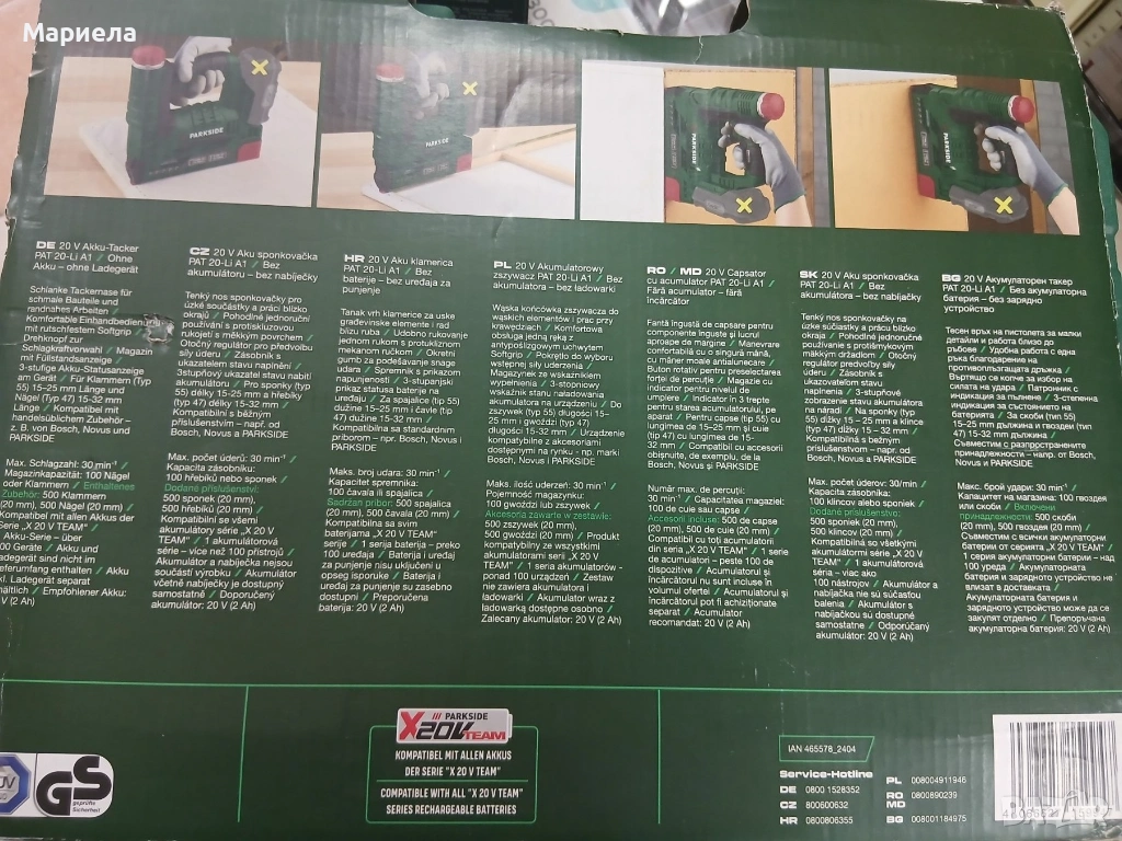 Акумулаторен Такер Parkside 20V / С батерия