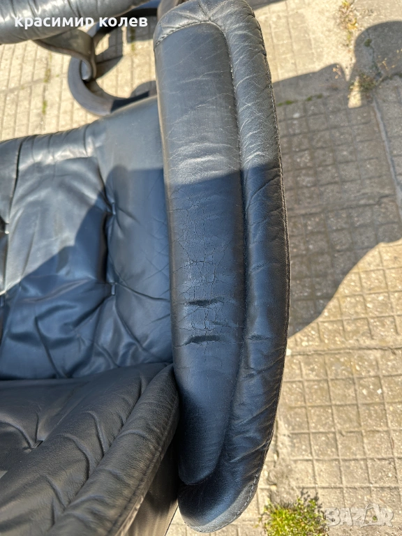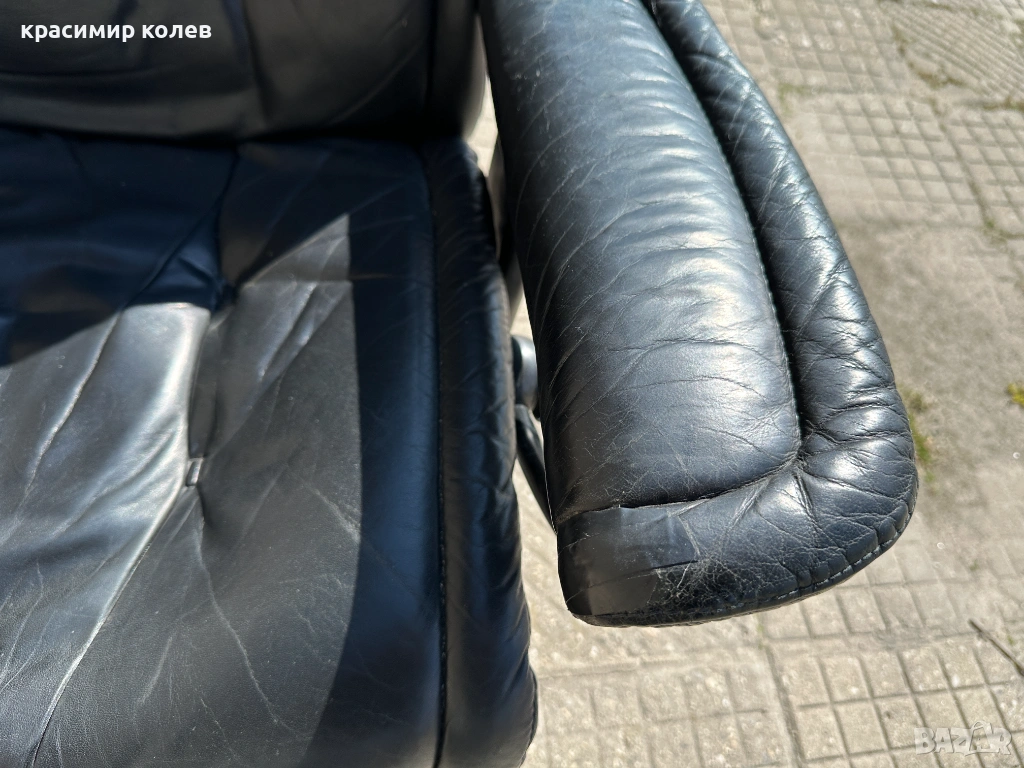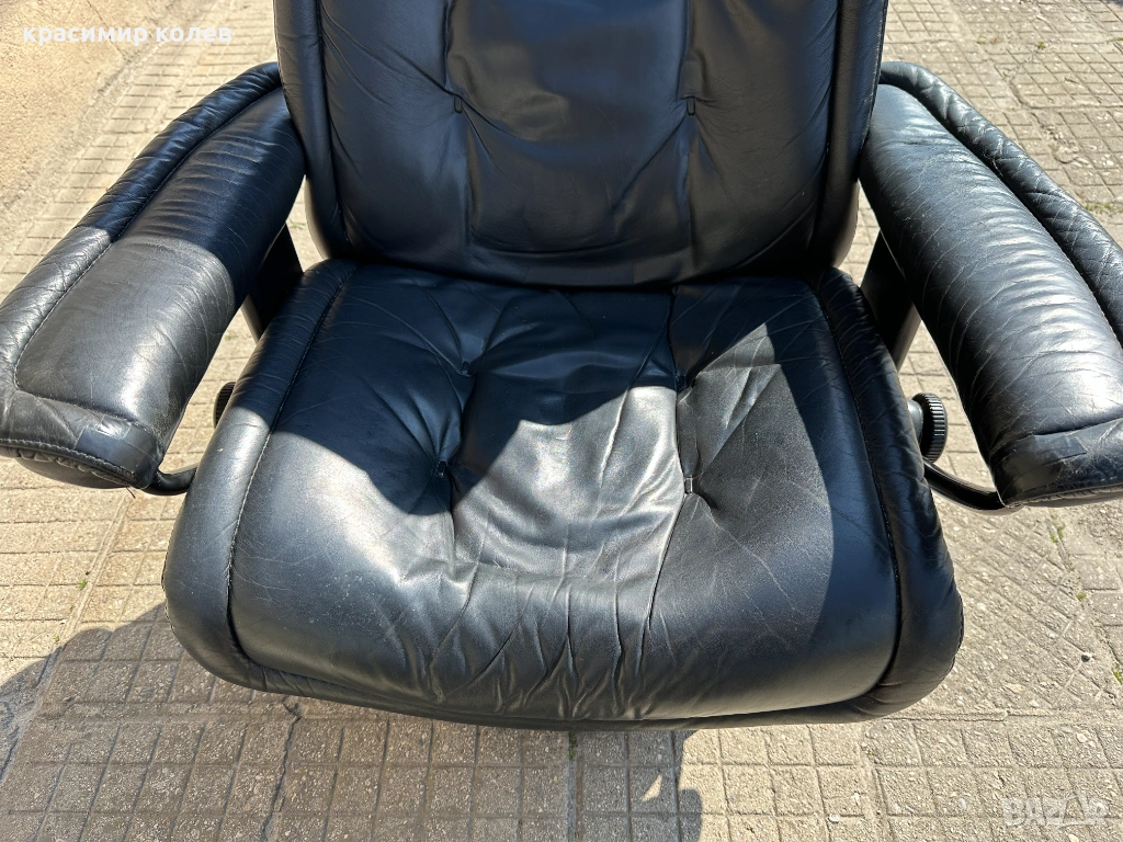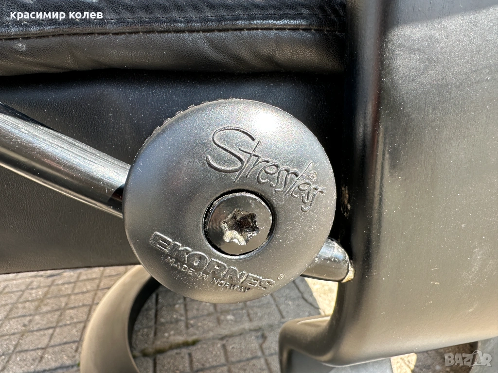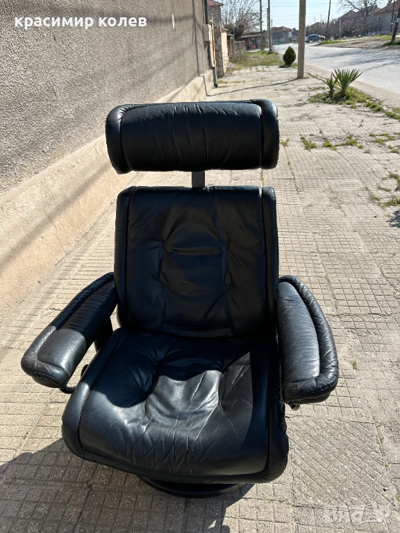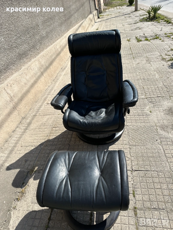 Stressless е една от най-известните и търсени марки за комфортни столове в света – стартирана през 1971 г. с първия модел, известен с иновативната си система за поддръжка на тялото (Plus™ система с glide функция, която позволява на стола да се движи с теб, 360° въртене, регулиране на наклона и отлична ергономия). Те са направени от висококачествена кожа (тук черна, вероятно top-grain leather), с дебела подплата, здрава метална/дървена рамка и често включват отделен ottoman (подложка за крака), която се движи синхронно.