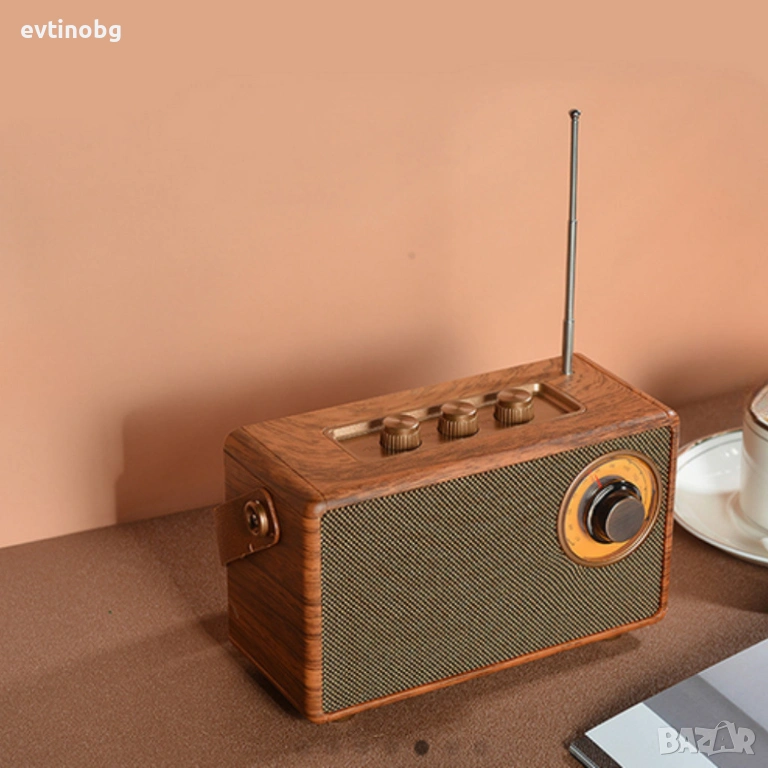 Bluetooth радио колонка AS23, 5W, 1500mAh, Кафява в ретро стил с кожена дръжка
