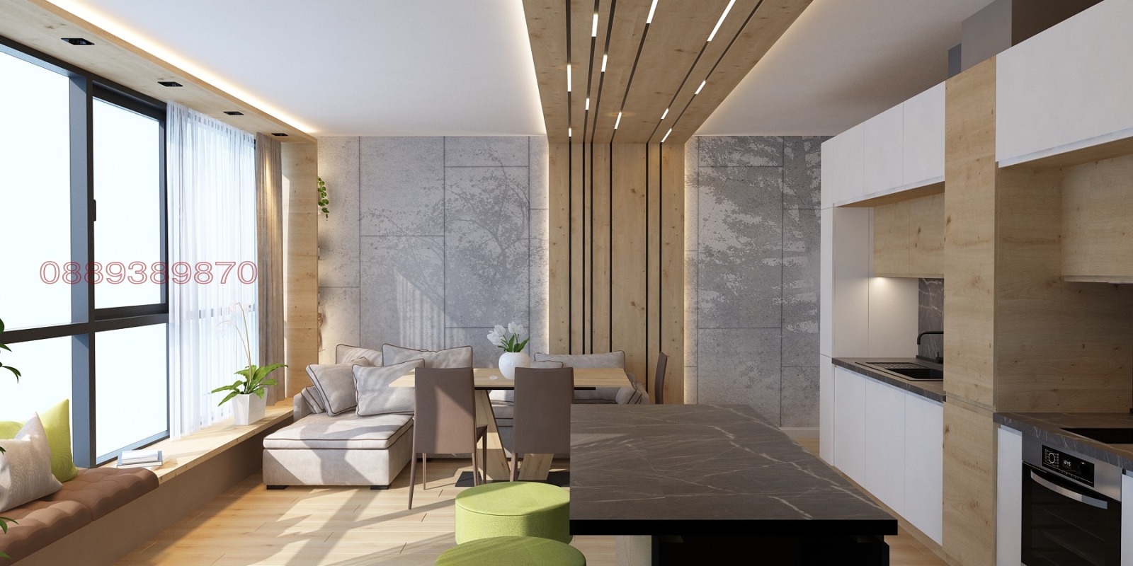 просторна и много слънчева всекидневна