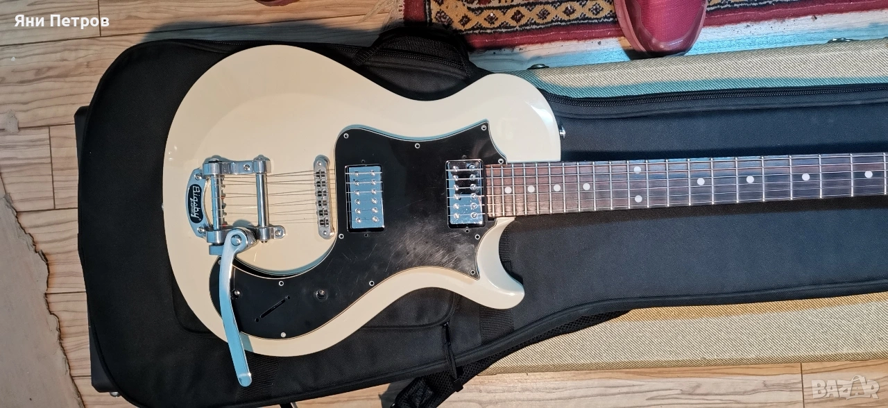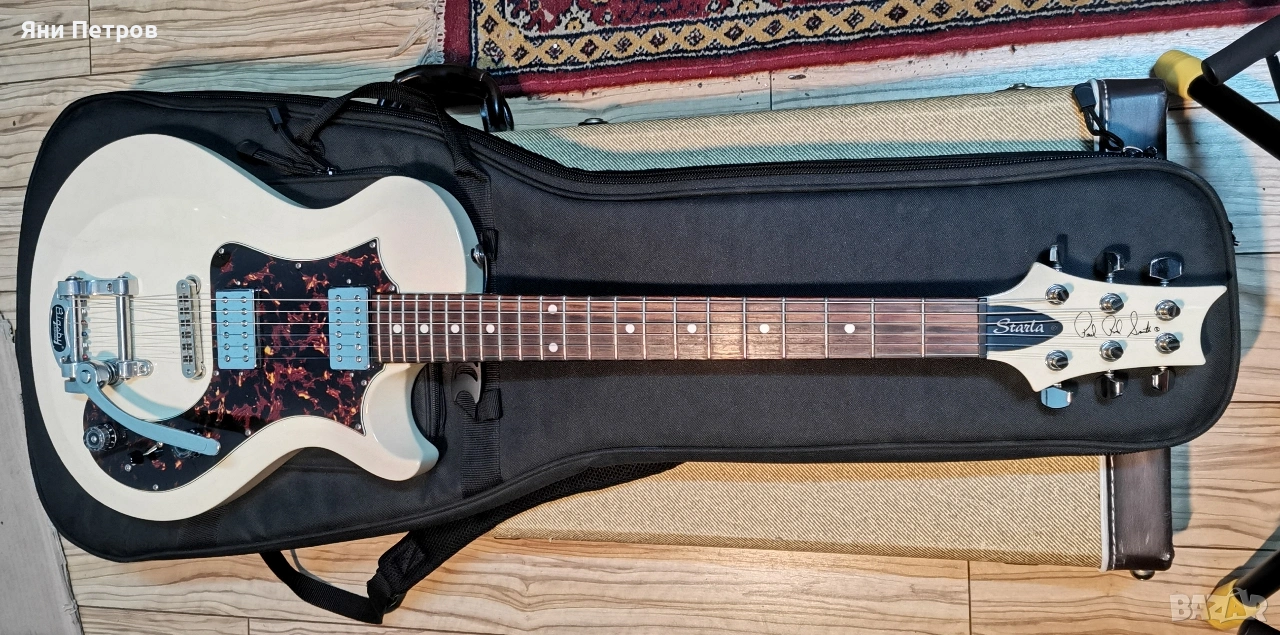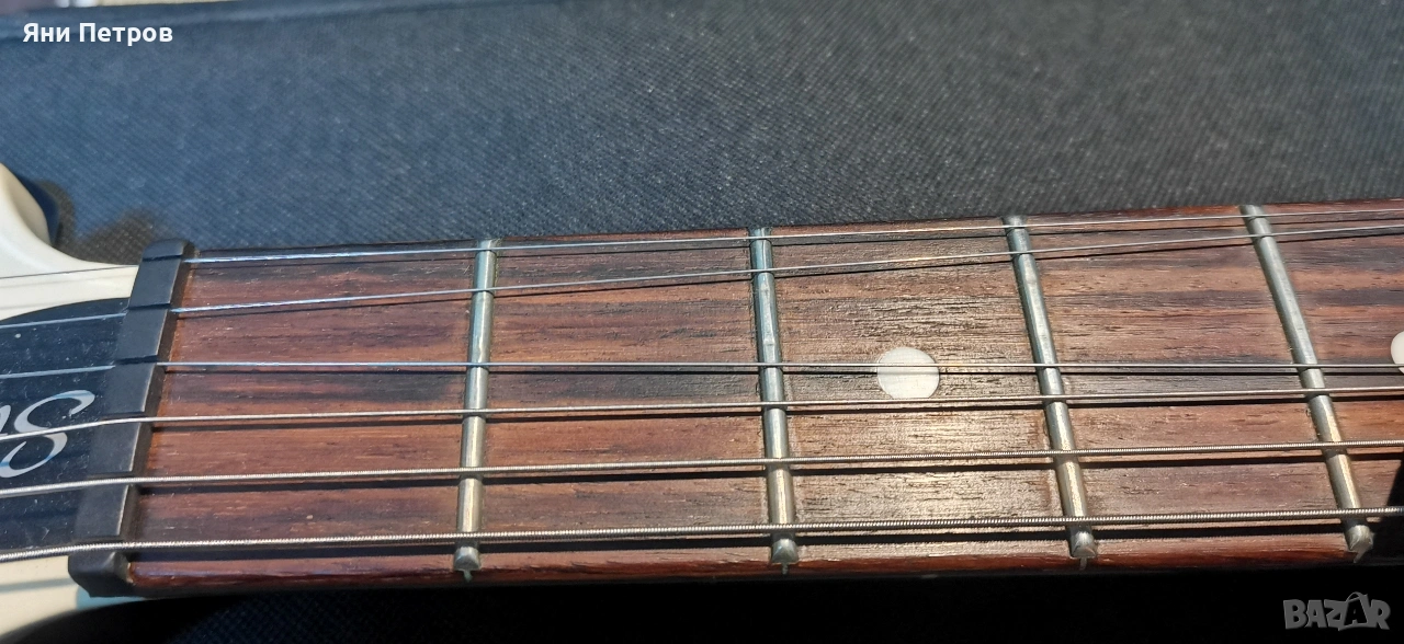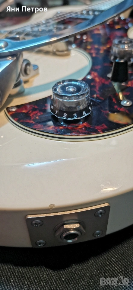 Тази е от серията S2, произведени в USA. Имам две такива, като бялата върви в комплекта с оригиналния черен пикгард. Заводски идват с този мек калъф, което за мен е голяма излагация, защото нови са по 2К евро. Долният пот е push-pull, който цепи и двата хъмбъкера. Има разни козметични забележки, но на кого му пука. Яхаш се на бигсбито и яко Rock'N Roll.