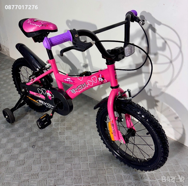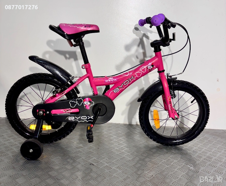 Детски велосипед С ПОМОЩНИ (като нов) за момиче Byox 16 цола/ колело → Обява 53781604