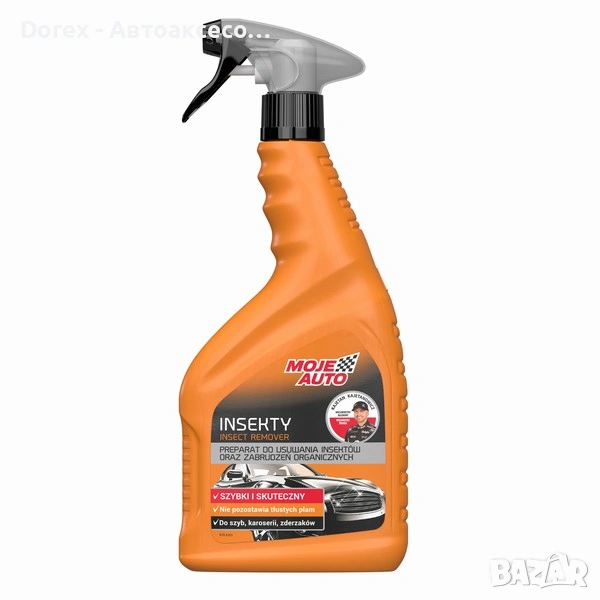 Готов за употреба препарат за отстраняване на трудни органични замърсявания от стъклени повърхности, както и от боядисани, гумени и пластмасови елементи. Благодарение на специално разработена формула съчетава ефективност и бързина на действие с безопасност при контакт с автомобилната боя. Не оставя мазни петна и придава блясък на почистените повърхности.