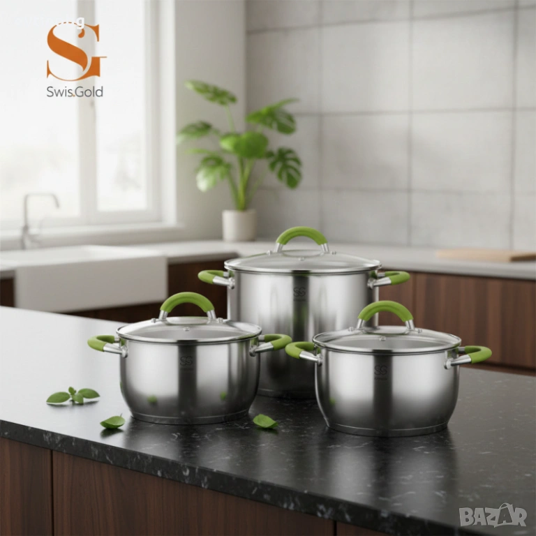 Комплект тенджери Swisgold – 3 броя, 5-слойно дъно - бързо и равномерно готвене