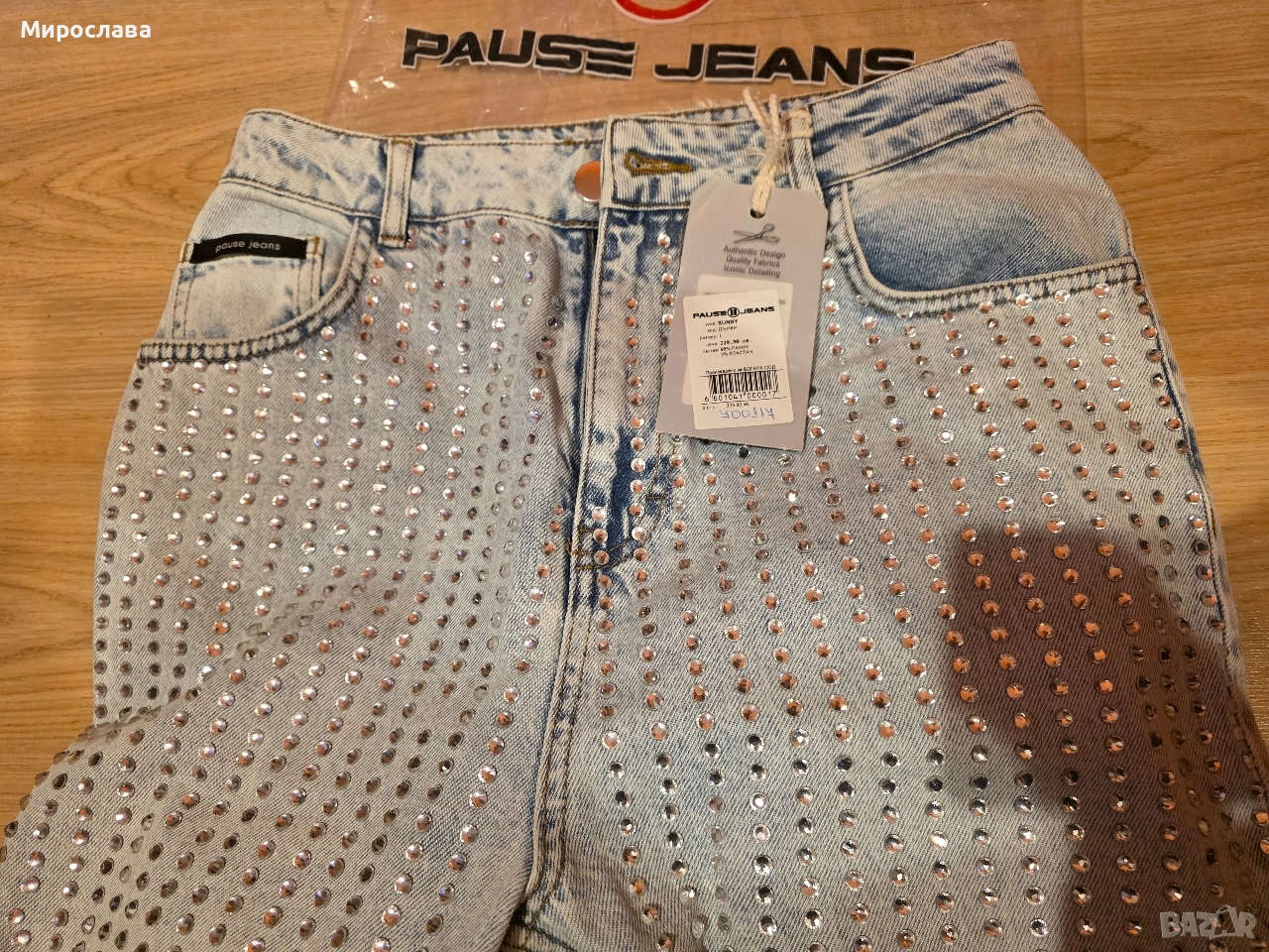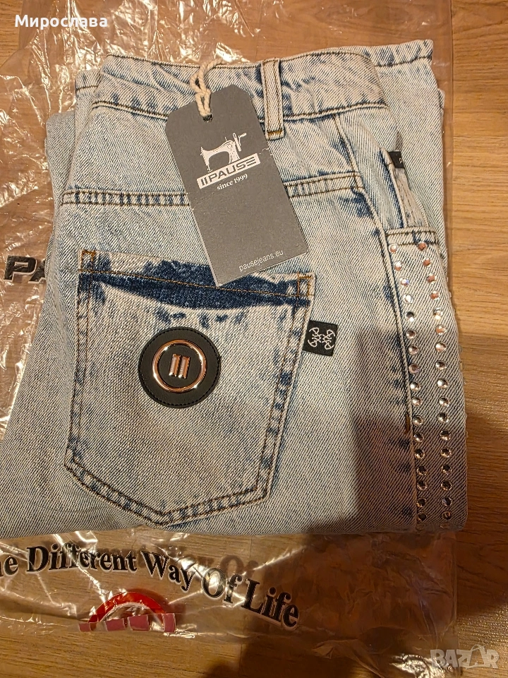 Чисто нови дънки Pause jeans, с етикет, L размер. Уникалния модел на марката с камъчета, за съжаление не ми стават. Цена: 70 €