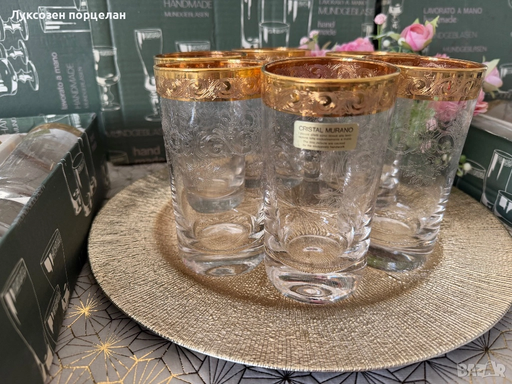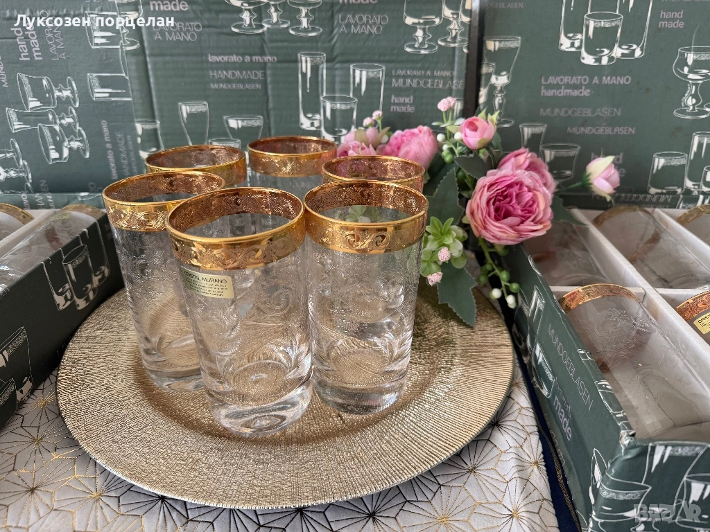 Продавам 3 комплекта по 6 броя водни чаши Murano Medici.
