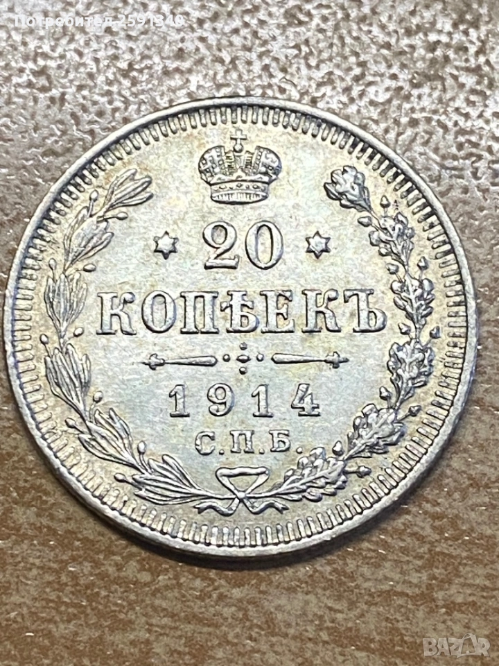 Русия 20 копейки 1914 , снимка 1 - Нумизматика и бонистика - 53781827 Русия 20 копейки 1914 , снимка 2 - Нумизматика и бонистика - 53781827 1/2