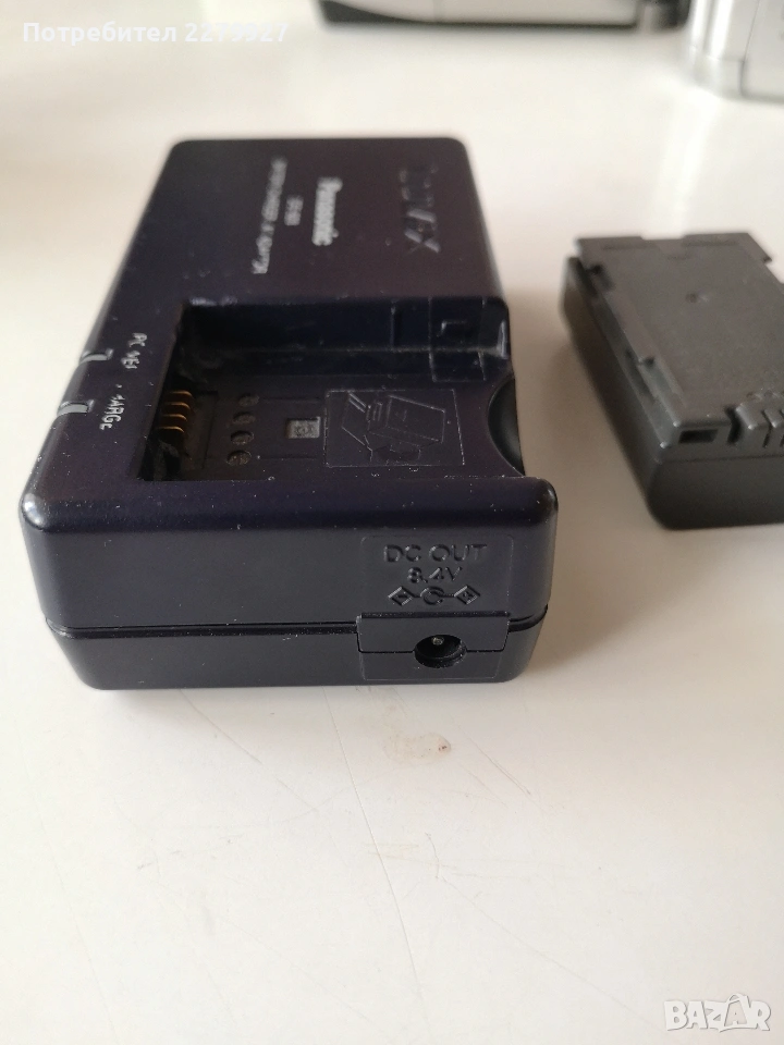 Универсален AC адаптор на Panasonic, който може да зарежда три модела батерии при 8.4V - 0.65A и да дава директно захранване към камера или фотоапарат с 8.4V - 1.3A.