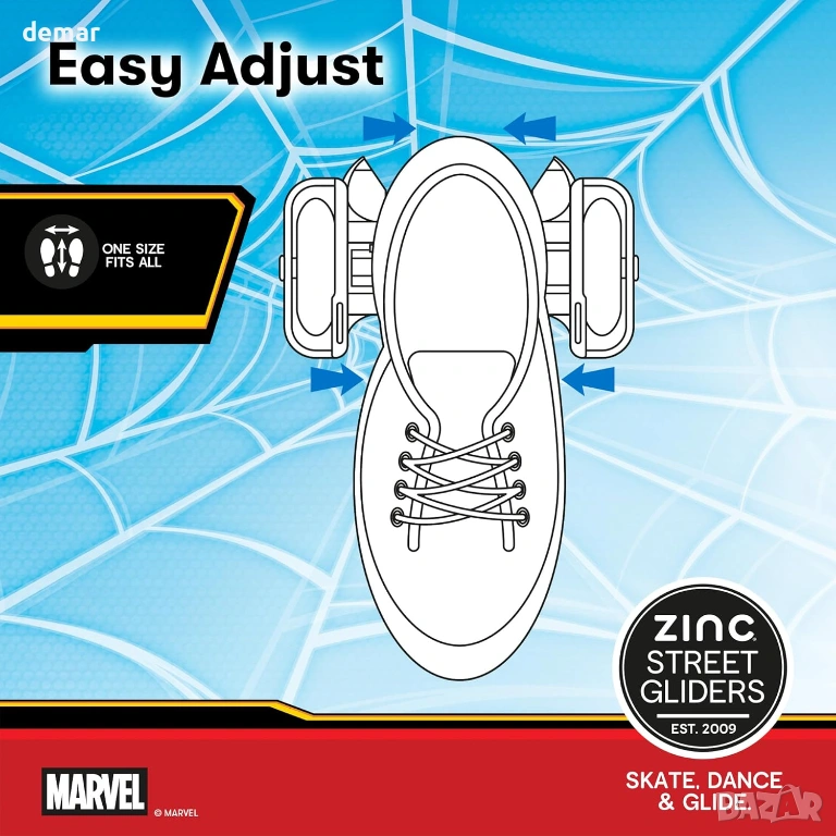 Официално лицензирани ролкови кънки Marvel Spiderman Street Gliders с цинково покритие, 5+ години