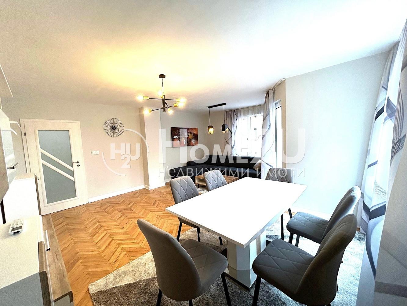 Апартаментът е луксозно обзаведен след основен ремонт с ПВЦ дограма и външна изолация. Входът на кооперацията е с контролиран достъп. Отоплението е с инвенторни климатици. В спалните, баните и кухнята има и конвекторни печки.