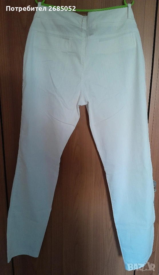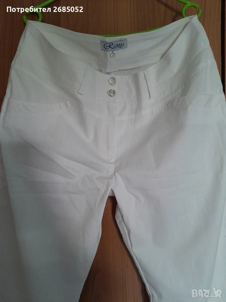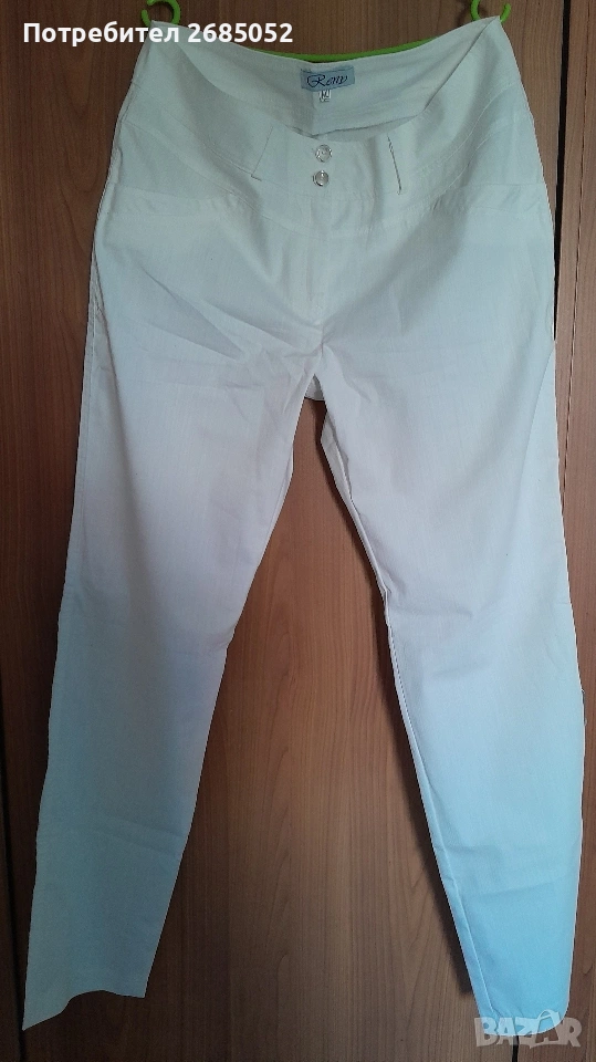 Дамски прав летен памучен панталон в бял цвят.Размер на етикета 4XL,но мисля,че е умален.