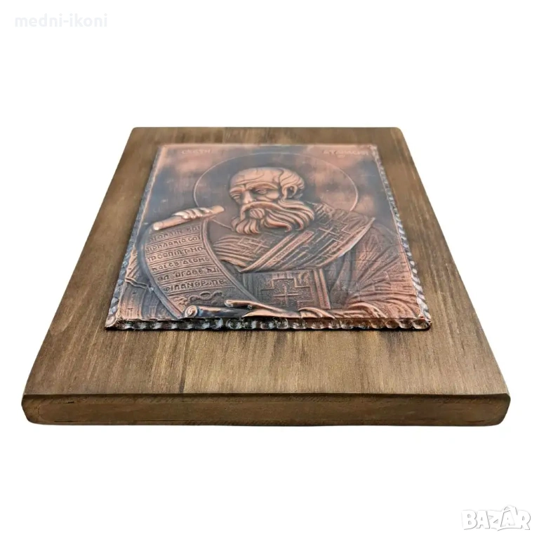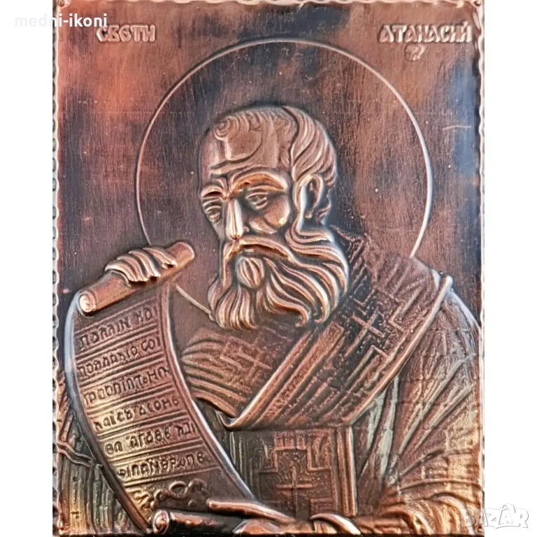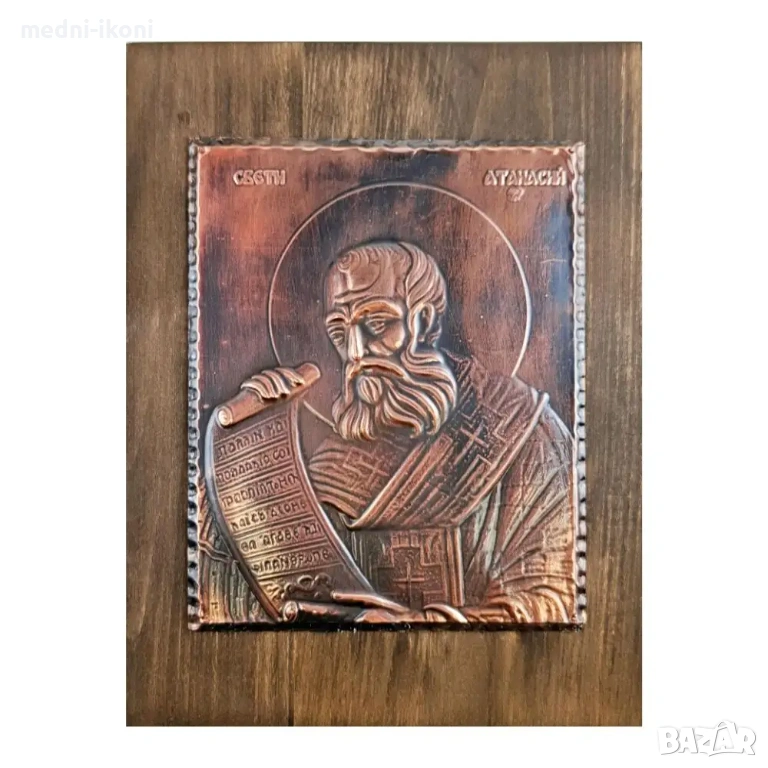 Свети Атанасий Велики, който е бил архиепископ на Александрия, египетски богослов и духовник. Той е един от най-видните радетели за чистотата на вярата и се приема за първия разпространител в Европа на възникналото в Египет монашество. Подходящ подарък е за имен ден, рожден ден, сватба, кръщене, нов дом и за всякакъв друг вид повод или празник. Всяка една икона е уникат, притежава сертификат за автентичност, не е културна ценност и може да бъде изнасяна извън страната.