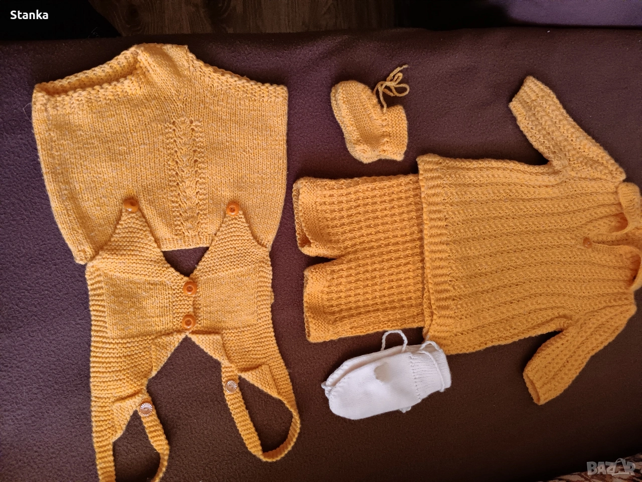 Жълто вълнено детско комплектче за бебе до 10 месеца.