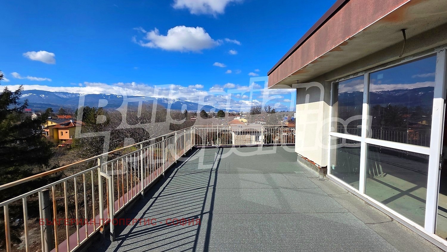 Последният етаж включва самостоятелен апартамент с площ около 90 кв.м, допълнен от просторна тераса от 100 кв.м. От нея се разкриват впечатляващи гледки към Витоша, Стара планина и околните райони.