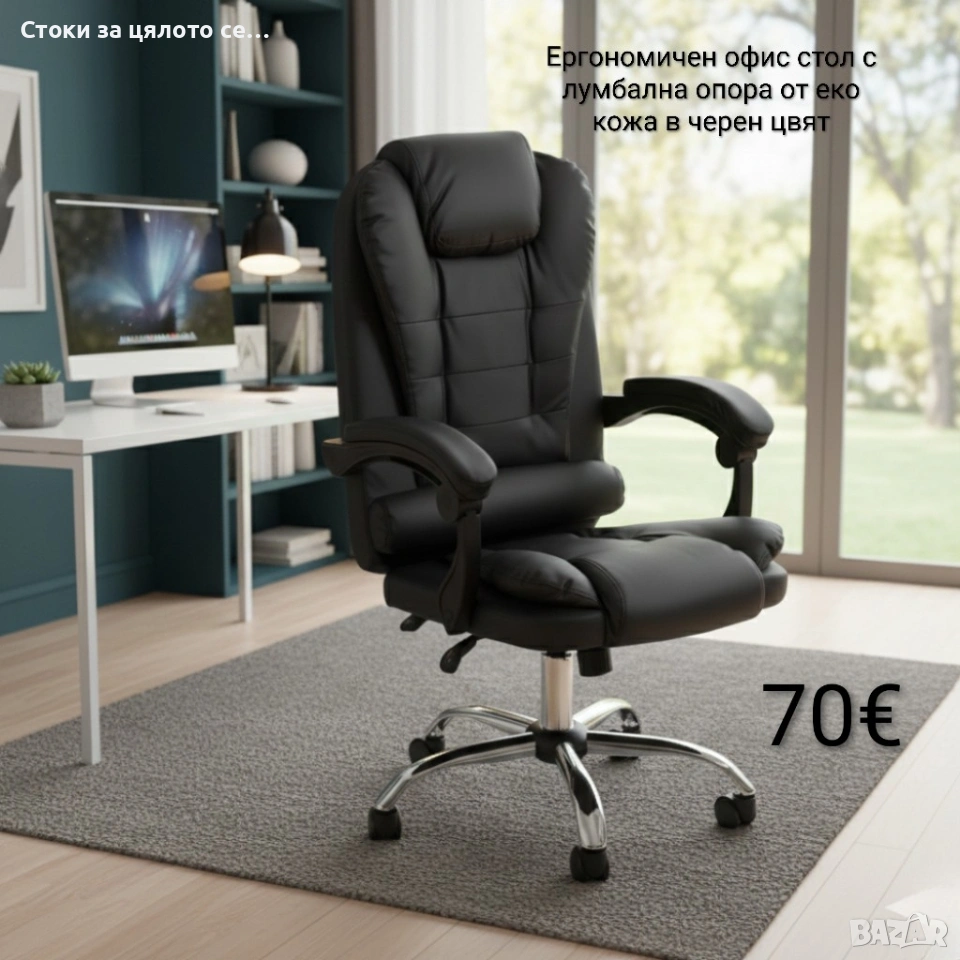 Ергономичен офис стол с лумбална опора от еко кожа в черен цвят → Обява 53782512