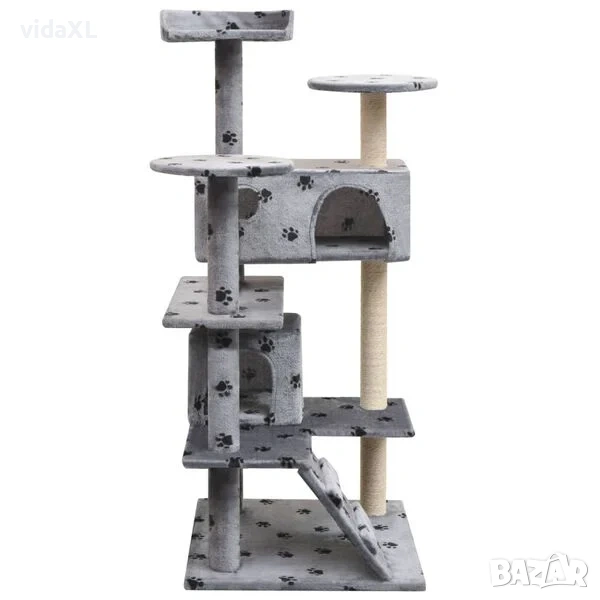 Вашите котешки приятели могат да наточват ноктите си върху стълбовете, обвити в сизалено въже, което осигурява здравословно решение за инстинктите им. Те също ще се забавляват, докато скачат нагоре и надолу по този забавен център за игри. Когато са получили достатъчно забавление, вашите малки приятели ще могат да почиват на горните платформи, от където ще имат по-добър изглед. Те могат също да се скрият в уютните къщи, за да подремнат.