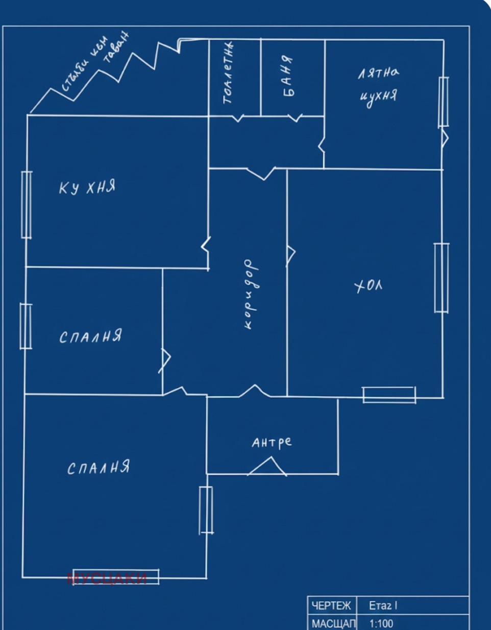 * Масивна къща с РЗП 160 кв.м., два входа, просторен Г-образен коридор, четири стаи, баня, тоалетна и лятна кухня.