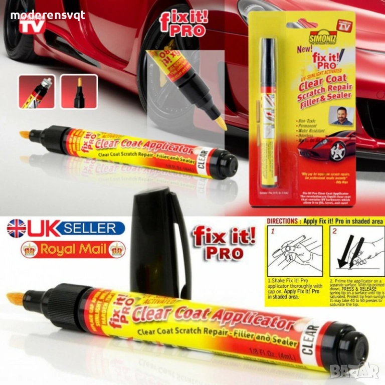 FIX IT PRO - революционен течен прозрачен лак, съдържащ UV втвърдители, за запълване и изравняване на драскотини по автомобилната боя.
