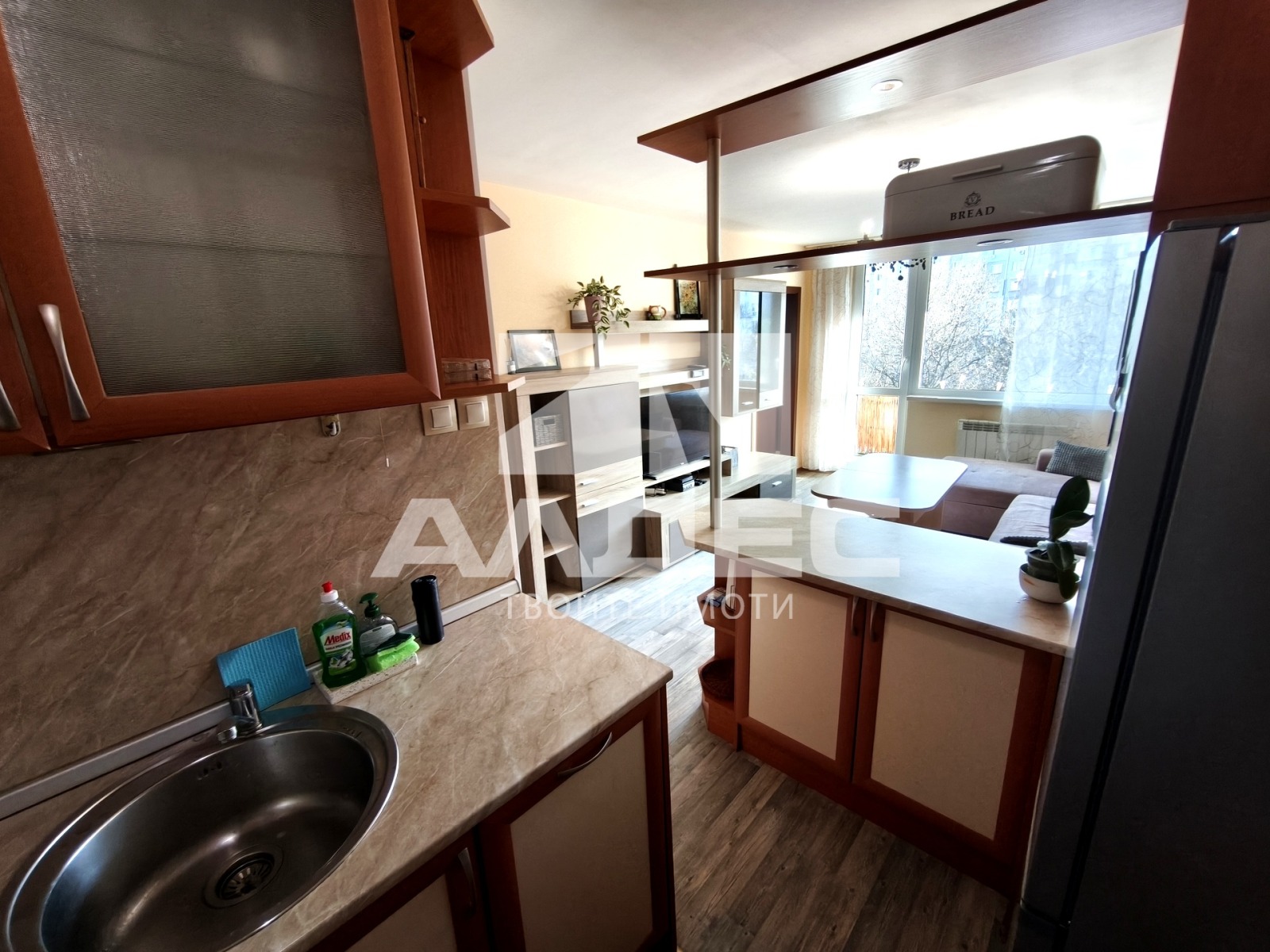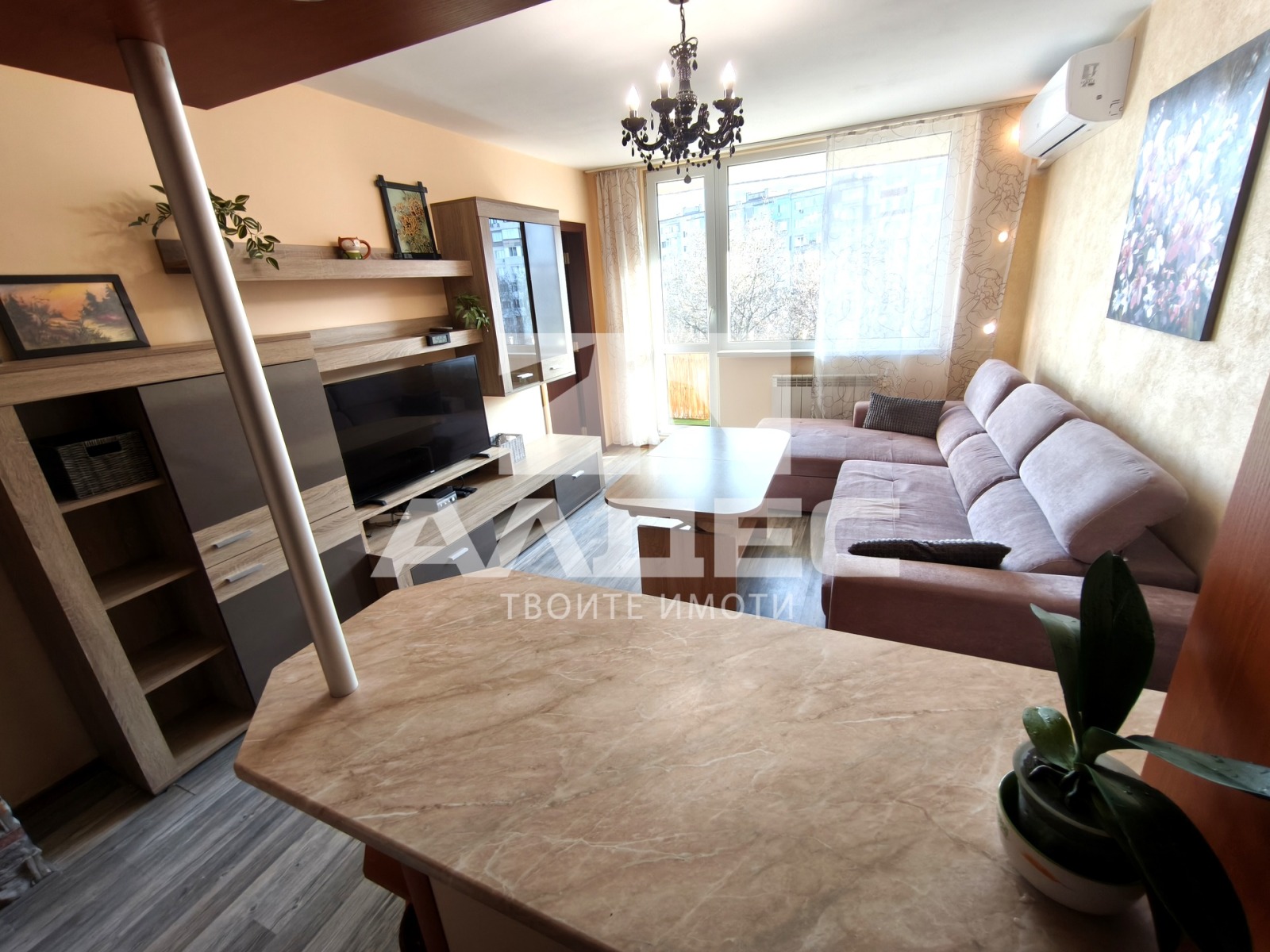 СЛЪНЧЕВ, ЮЖЕН, ВЪТРЕШЕН, ОБЗАВЕДЕН, компактен двустаен апартамент, на тихо място в сърцето на Младост 1; пешеходно разстояние от пазар, метростанции, спирки на гр. Транспорт; училище, детски градини; Тухлено строителство от 70-те години; етаж 5 от 8, асансьор; РАЗПРЕДЕЛЕНИЕ: Застроена площ: 46,50 кв.м; входно антре; дневна с тъмен кухненски бокс; преход от дневната към спалня; една тераса - обща пред дневната и спалнята; баня с тоалетна; ОТОПЛЕНИЕ: ТЕЦ, алуминиеви радиатори; + климатик; ПОДОВИ НАСТИЛКИ: коридор теракота; бокс, дневна и спалня ламинат; баня с тоалетна фаянс, теракота; ОБЗАВЕЖДАНЕ: бокс: хладилник; печка, котлони, абсорбатор; дневна ъглов диван с ракла; ниска маса; секция, телевизор; коридор: пералня; прахосмукачка; стая спалня с матрак и ново спално бельо; ИЗЛОЖЕНИЕ: ЮИ; ЗА ПОВЕЧЕ ПОДРОБНОСТИ И ОГЛЕДИ: 0899 931 948, оферта 11420