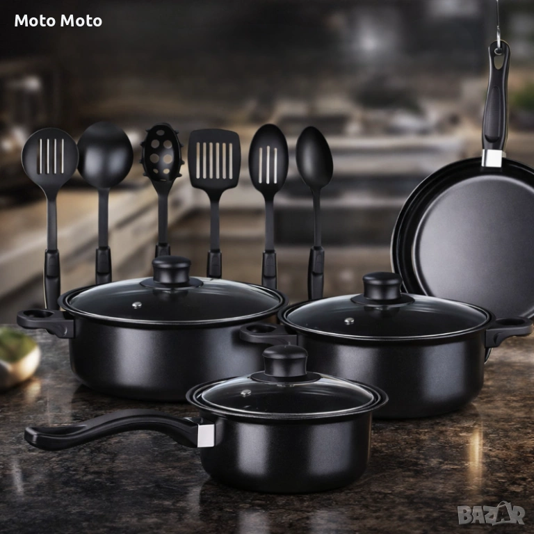 Комплект съдове за готвене от 13 части,незалепващо покритие,за използване на индукционни котлони и п → Обява 53783183