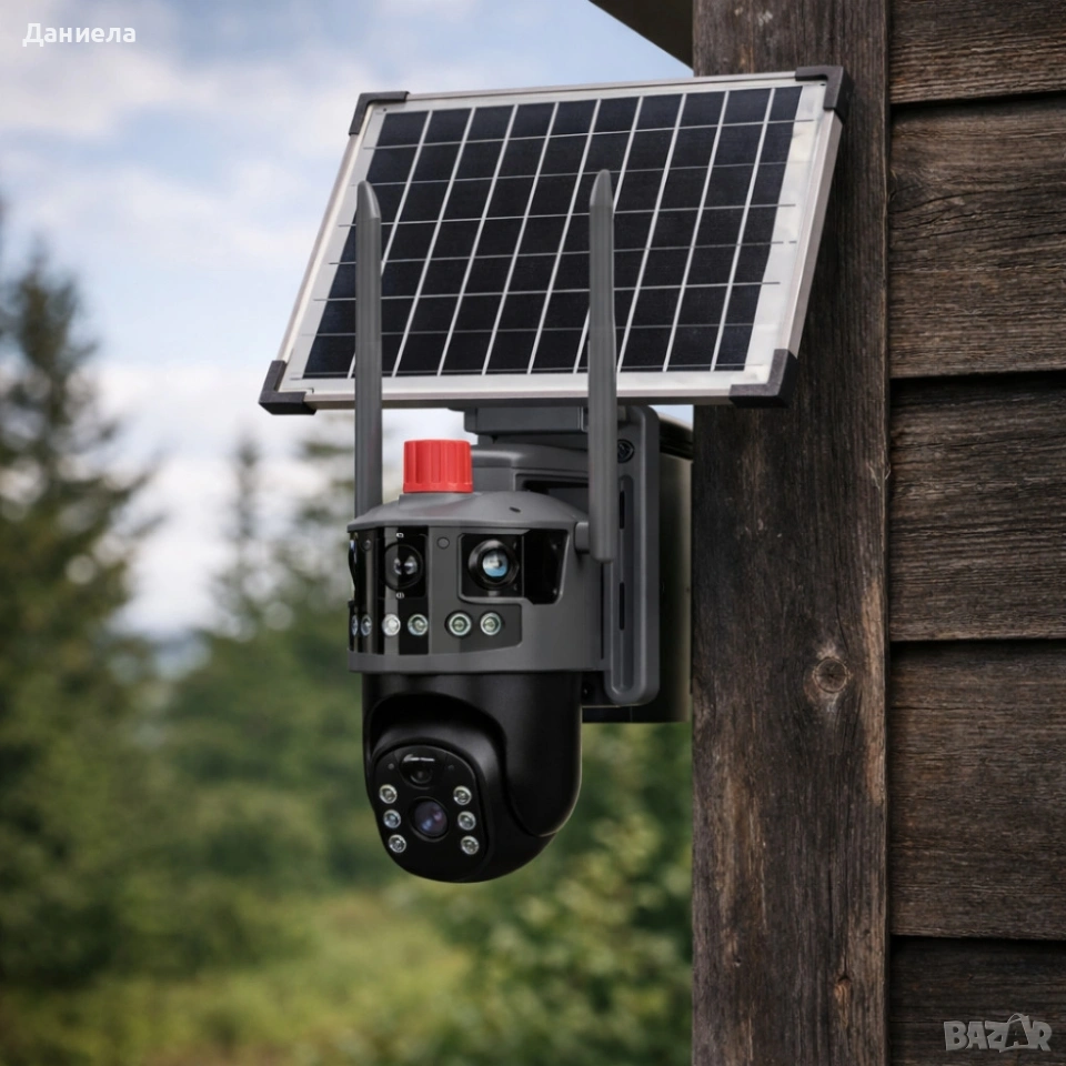 Технически характеристики на Соларна Wi-fi камера с панорамен изглед Кратък обзор на ключовите технически данни, които гарантират висока функционалност и надеждност: Резолюция видео: 2540 x 1440 pixels Резолюция снимки: 12 MP Подсветка: IR и LED ринг (6 IR + 6 LED) Батерия: 8000mAh / 3.7V Сензор за движение: Да Нощен режим: Да, цветна видимост при над 0.2 LUX Приложение: V380 Pro (Android / iOS), управление и преглед в реално време Захранване панел: 3W / 5V, интерфейс Type-C, кабел 140 cm Захранване камера: соларно + вграден акумулатор Защита: IP66, подходяща за външен монтаж