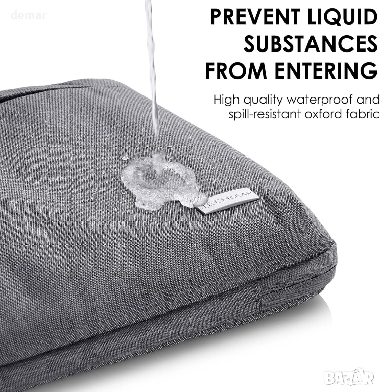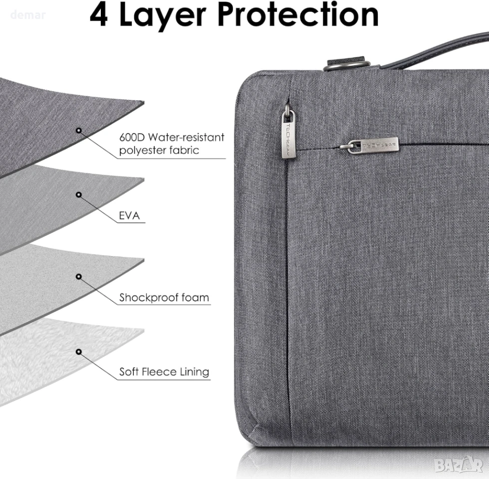 TECHGEAR защитен калъф за лаптоп 15.6 инча, с дръжка, презрамка и джобове, водоустойчив, сив