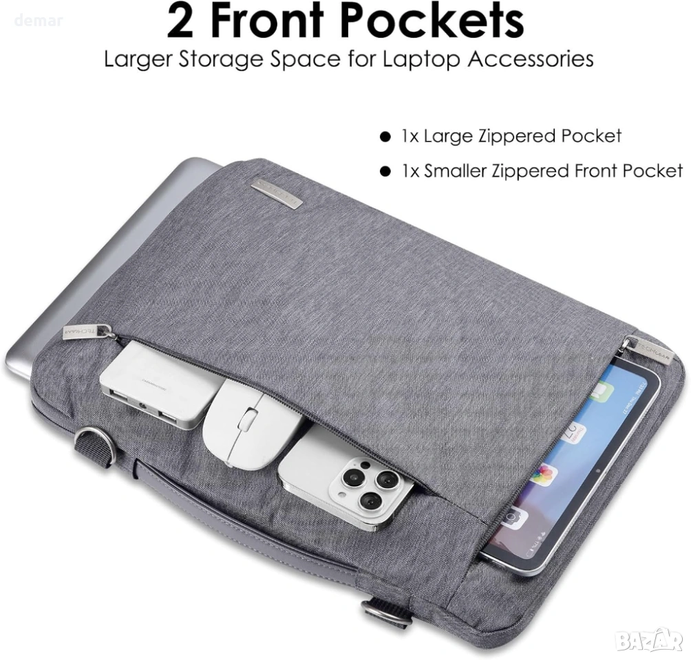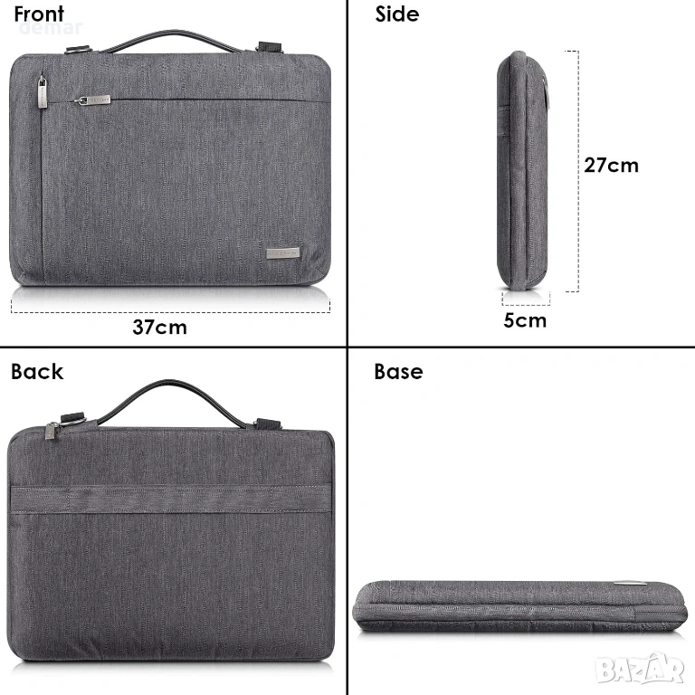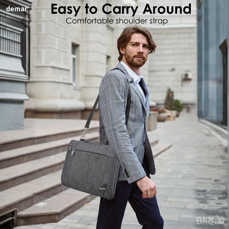 Тънък калъф за лаптоп, проектиран за много лаптопи с размер 15–16 инча, с вътрешен размер 40 × 27 см, предлагащ леко, но защитно решение за ежедневна употреба и пътуване. Калъфът е с 360° подплатена защита с мека плюшена вътрешност и подсилени ръбове, които предпазват от удари, падания и ежедневно износване. Водоустойчивата външна част помага за защита на устройствата от дъжд, разливи и пръски. Два просторни предни джоба с цип осигуряват удобно съхранение на аксесоари като зарядни устройства, кабели, мишка, тетрадки и други важни неща. Дизайнът включва прибираща се подплатена дръжка за лесно носене в ръка, плюс регулируема подвижна презрамка за удобно пренасяне без ръце. Задната презрамка за багаж позволява сигурно закрепване към дръжките на куфара, което го прави практичен за пътуване до работа, университет и пътуване.